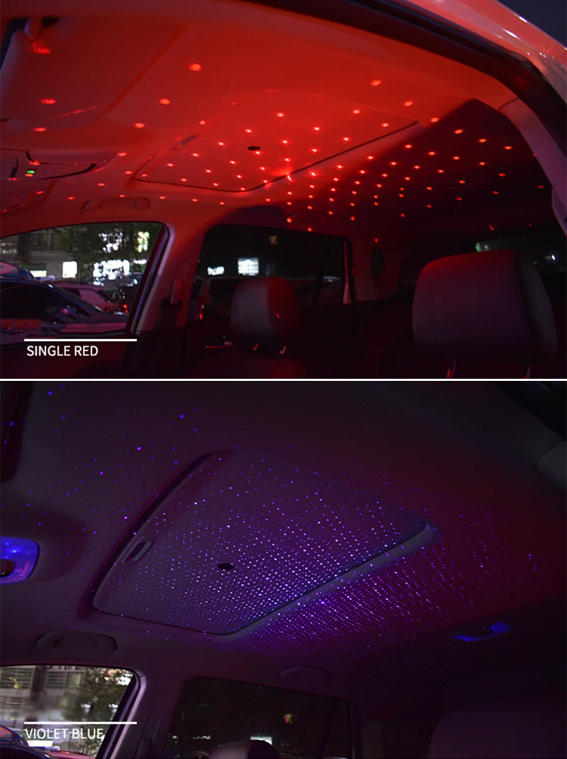4. Автомобильная интерьерная декоративная лампа Модифицированная подлокотник коробка Звездная атмосфера светильник на крыше звезда проекционная лампа на крыше, она может проектировать супер яркие и крутые звезды на крыше автомобиля.