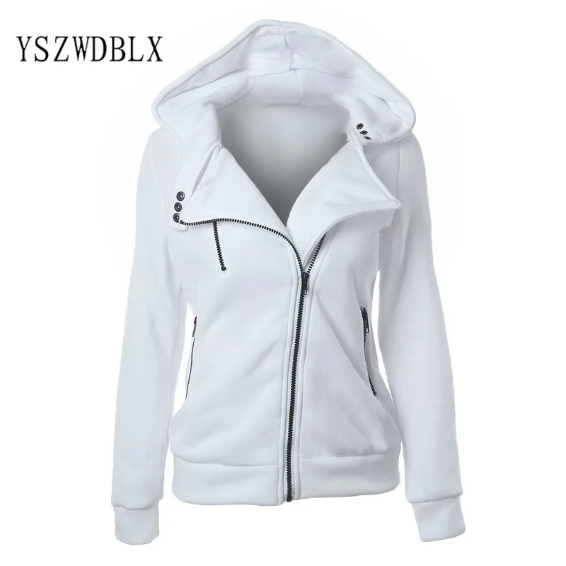 Повседневная осенне-зимняя женская толстовка, 2021, белая, на молнии спереди, в стиле Харадзюку, приталенные женские куртки и пальто, толстовки с капюшоном