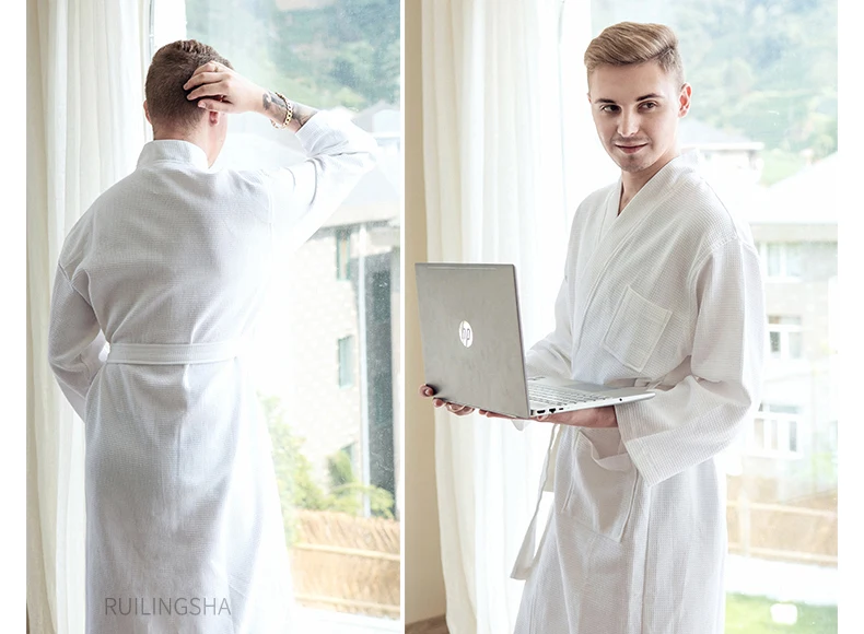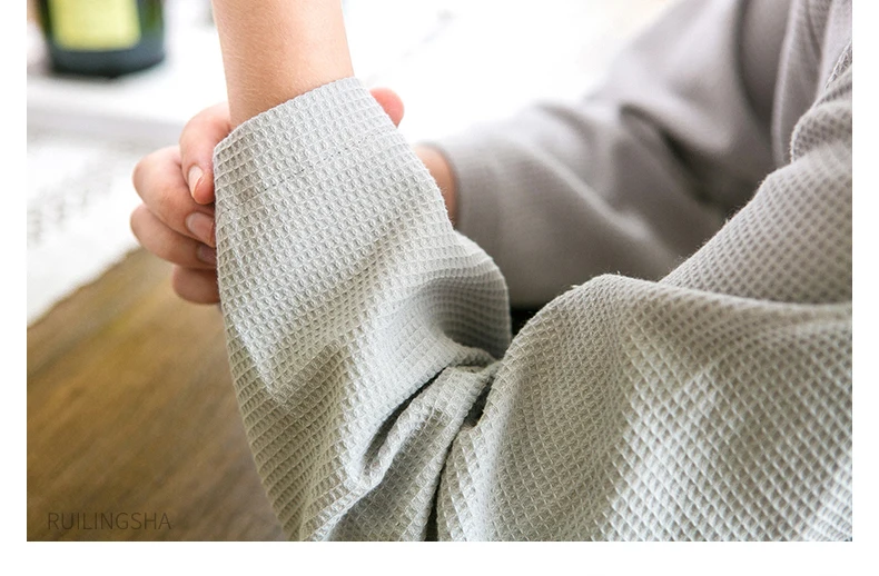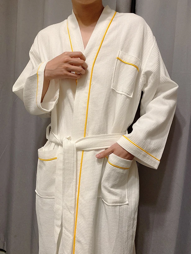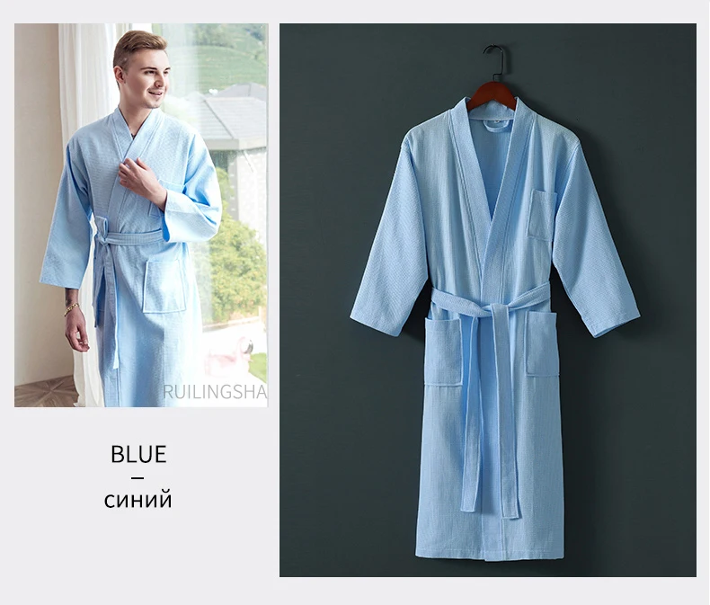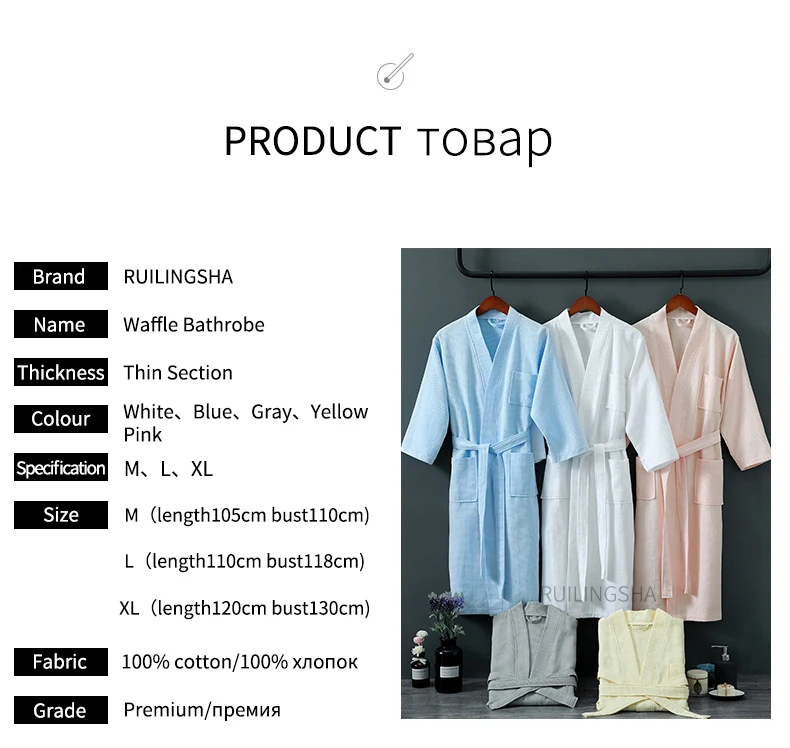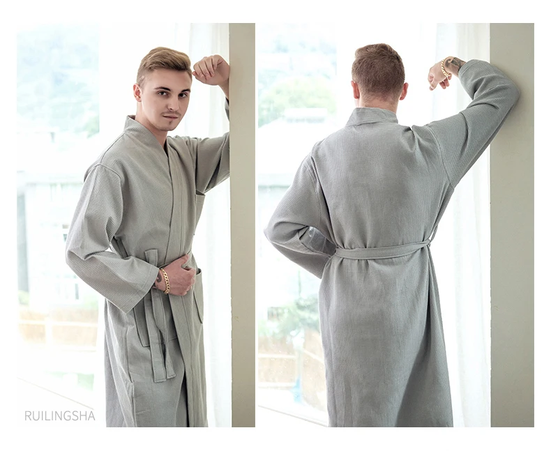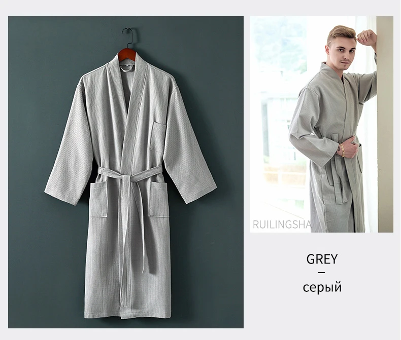 This new fashion robe was packed very nice, material is pure cotton waffle looks luxurious, i a student happy person have this item is conveniently put on and take off when at home, body height is 186cm, weight is 85KG, chose the size XL is fitted, chose colour grey feels noble, strongly suck water, comfortable, quick dry, good workmanship and no any stitching thread, delivered within 7 days very fast, honest seller, i will buy more.