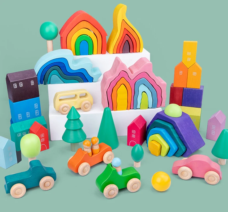 Детские игрушки деревянные радужные строительные блоки Моделировани...
