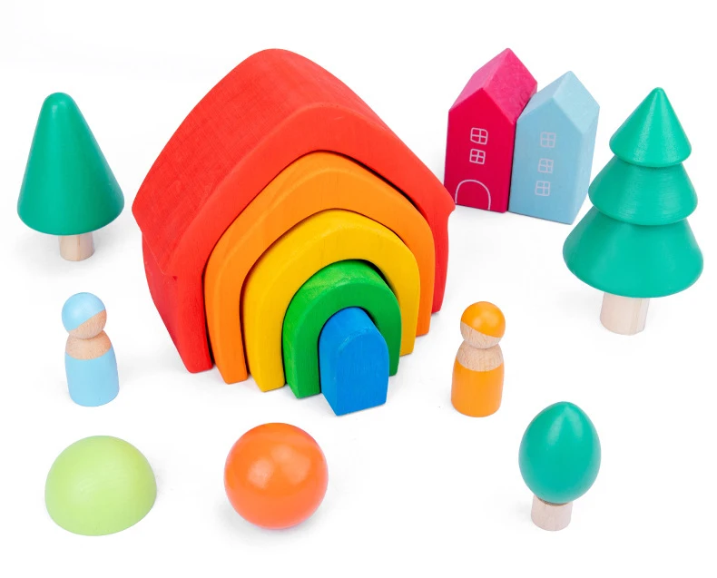 Детские деревянные игрушки Радуга строительные блоки имитация леса ...