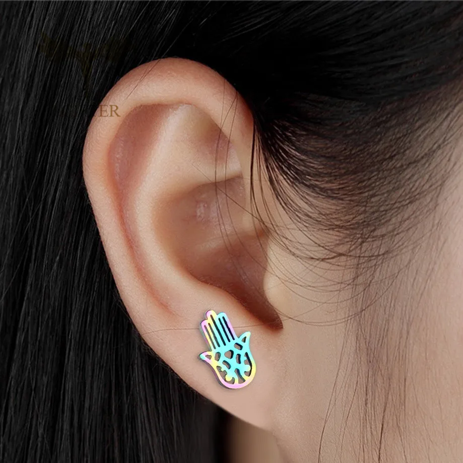 Серьги для девочки Рука Фатимы Хамса Серьги-гвоздики Полые Винтажны...