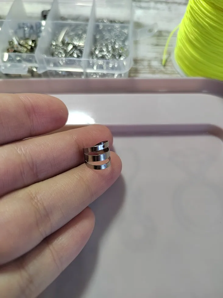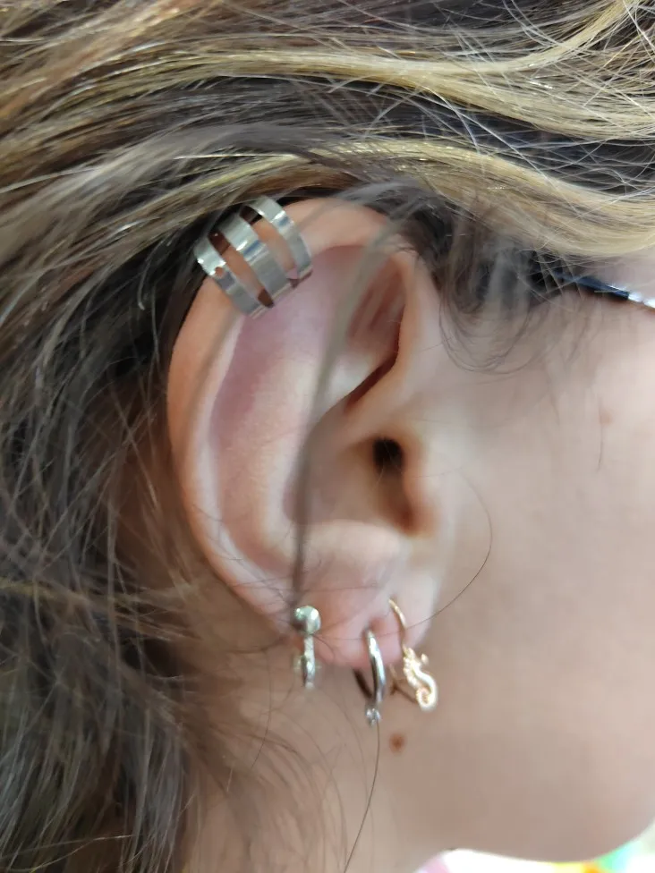 Легкий и тонкий, но очень хорошее качество, нет острых краев, металл яркий, гладкий, без обесцвечивания. Это большой манжет, с дополнительным отверстием, которое подходит для колец петли, может быть согнуто, чтобы соответствовать уху. Очень хорошо, и он прибыл в Канаду через 11 дней!