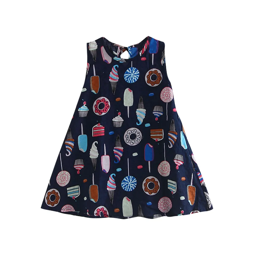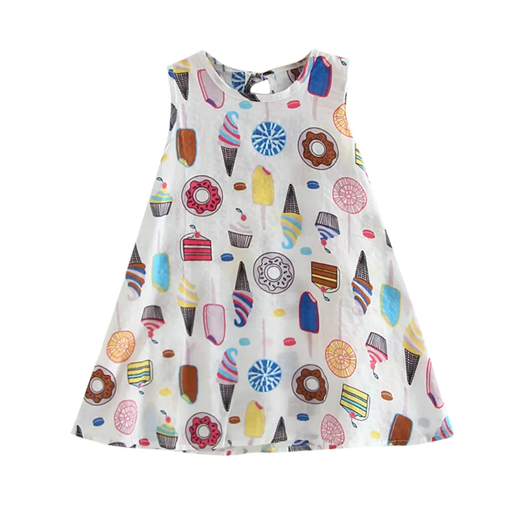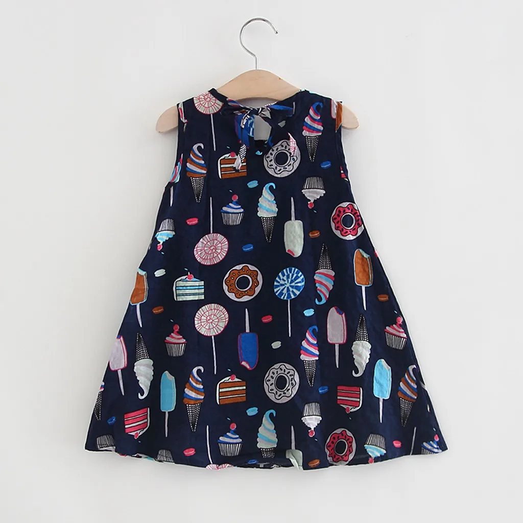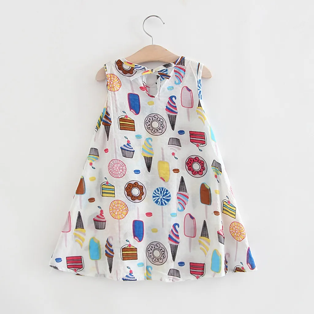 Платья без рукавов с принтом мороженого для маленьких девочек повседневная одежда
