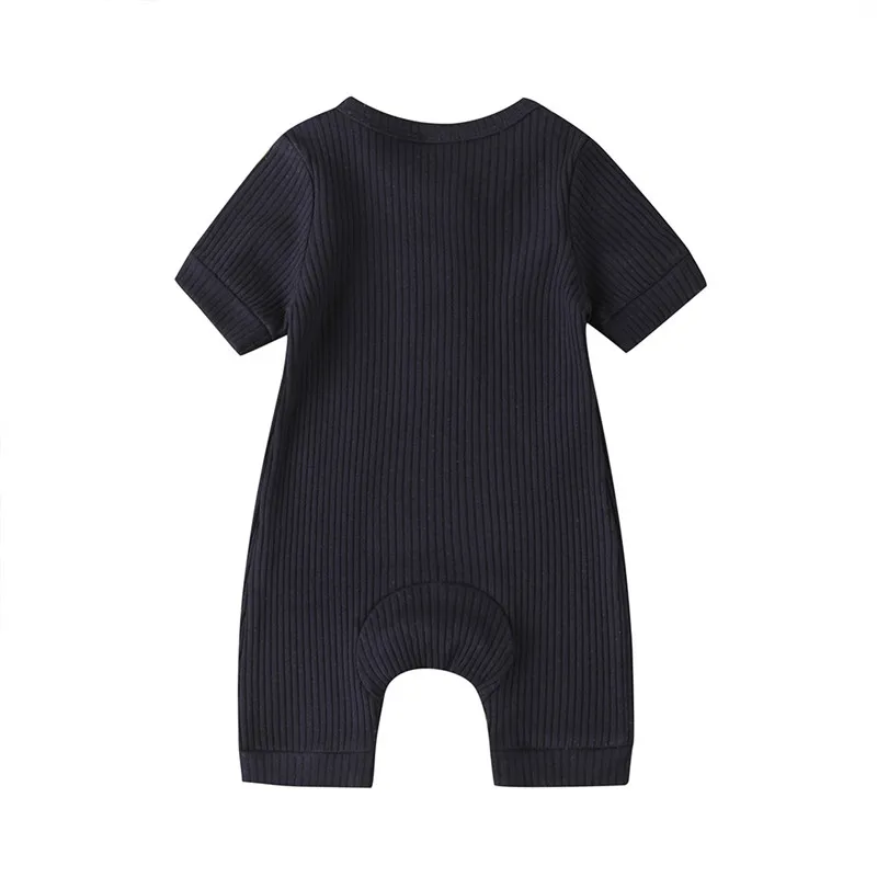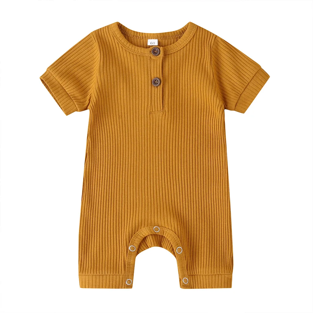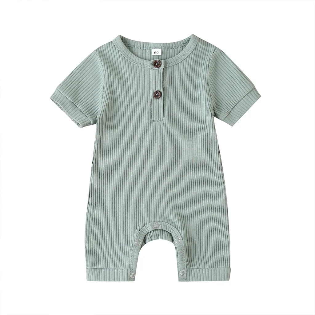 Комбинезон для младенцев, цельный комбинезон, комбинезон, трикотажный комбинезон в рубчик с короткими рукавами, летняя одежда, 0-18 месяцев
