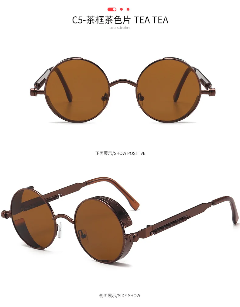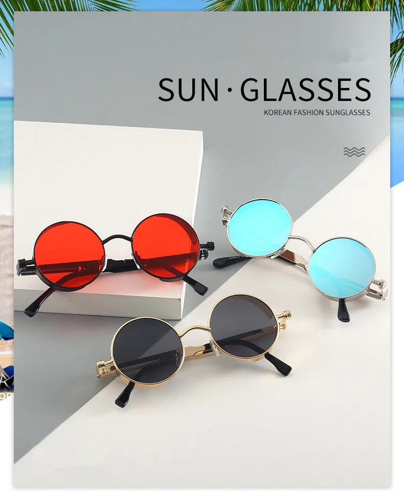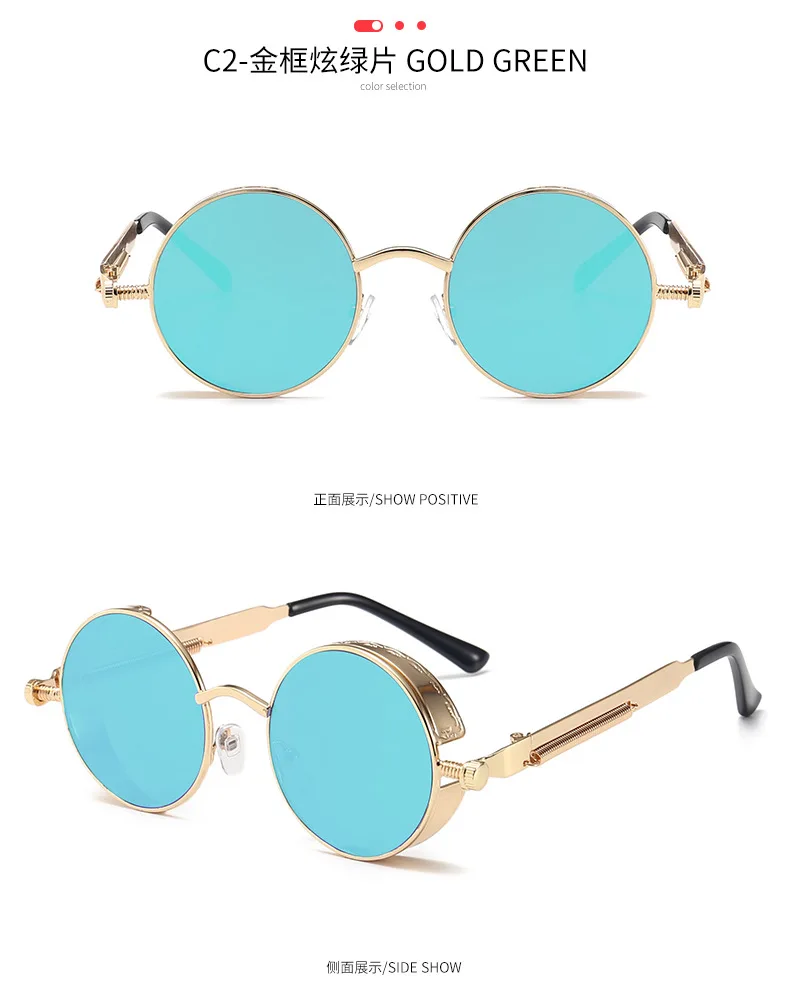 Солнцезащитные очки круглые для мужчин и женщин, модные очки в металлической оправе в стиле стимпанк, высококачественные дизайнерские винтажные очки в ретро-оправе с защитой UV400
