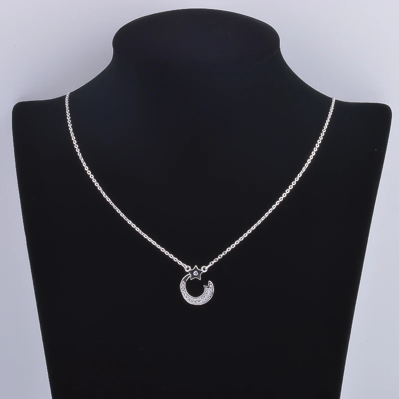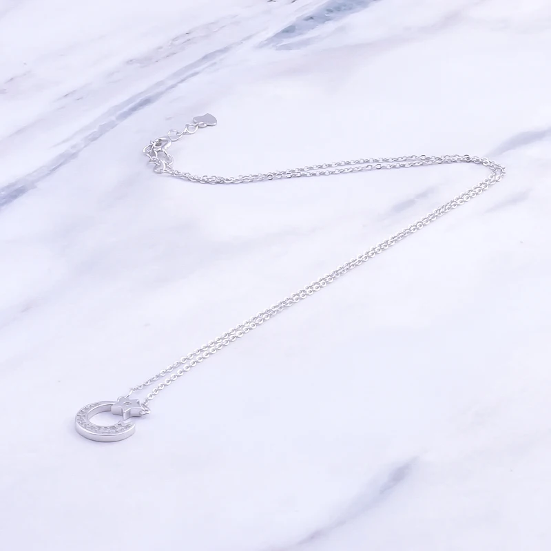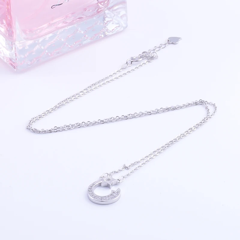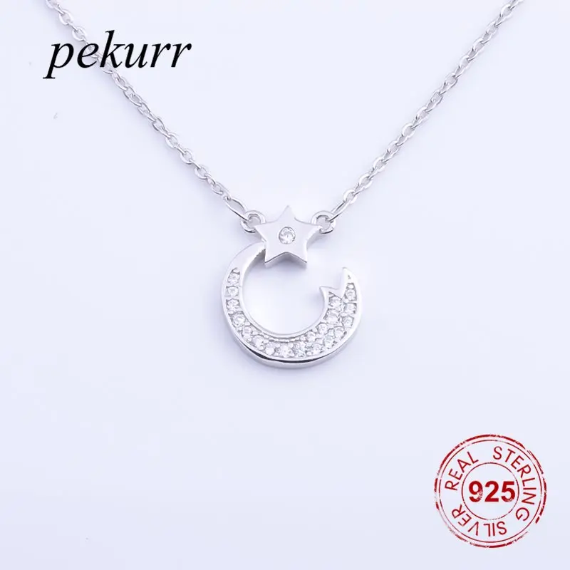 Ожерелье Pekurr женское из серебра 925 пробы, с полумесяцем и звездой, с цирконием, подвеска на длинной цепочке