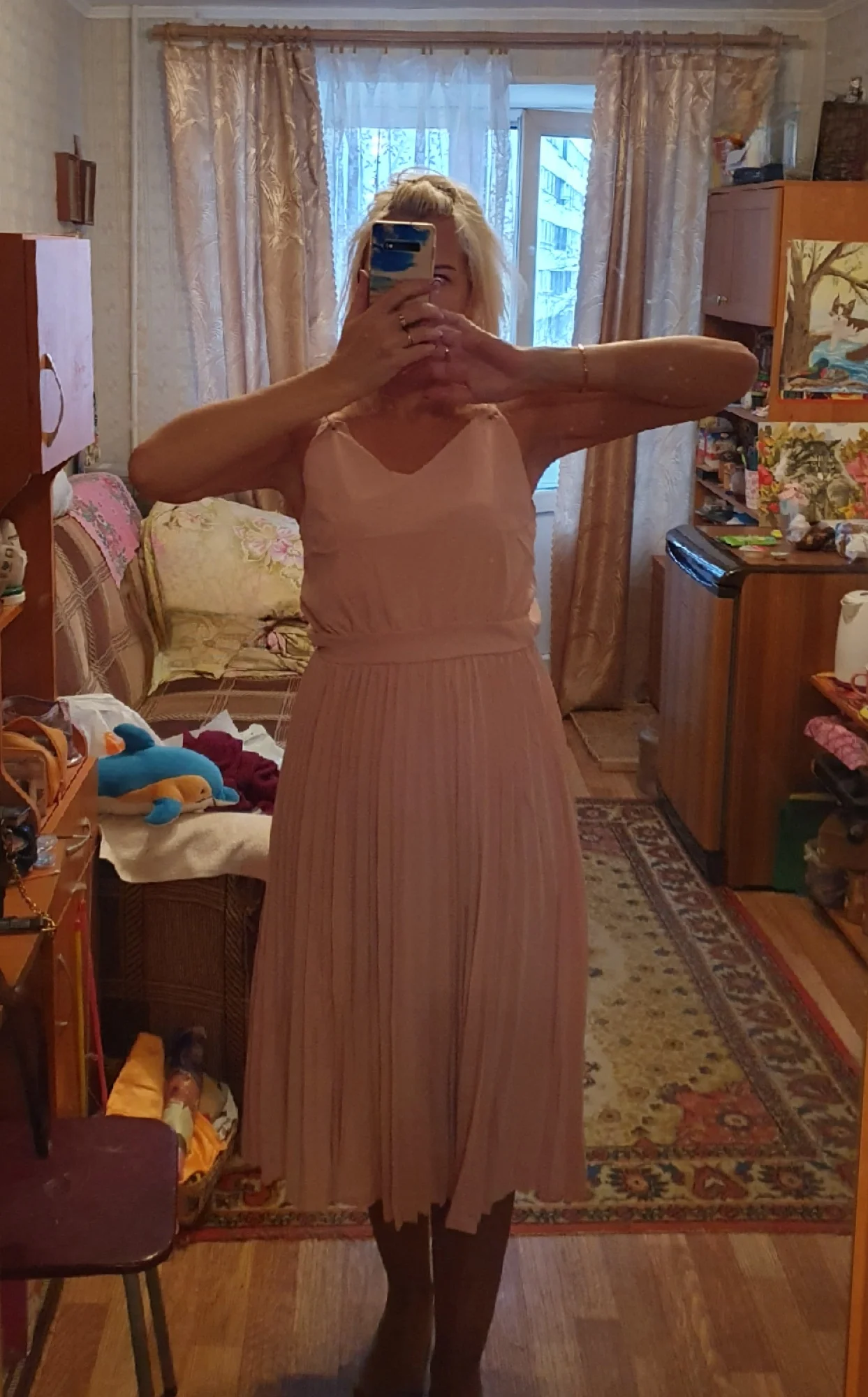 Платье соответствует описанию продавца. Опираясь на предыдущие отзывы, заказала на размер больше, в итоге платье большевато, но не критично. Подклада нет, но не заметила, чтобы платье просвечивало. Доставка на 3 недели меньше от заявленной! Спасибо