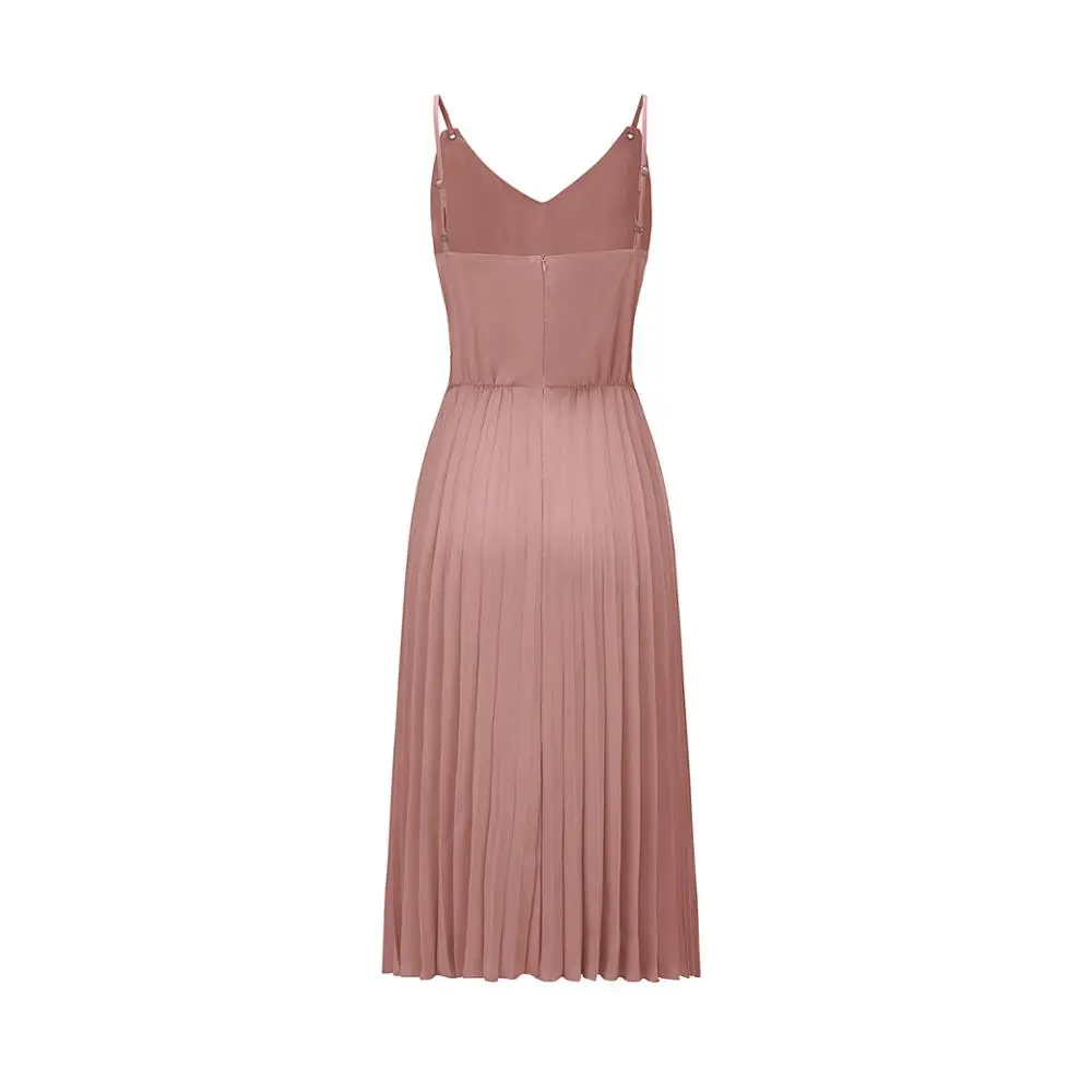 2021 Сексуальное Женское летнее сексуальное платье на тонких бретельках с v-образным вырезом Розовое женское плиссированное платье миди повседневные офисные женские вечерние платья