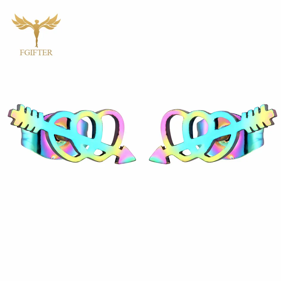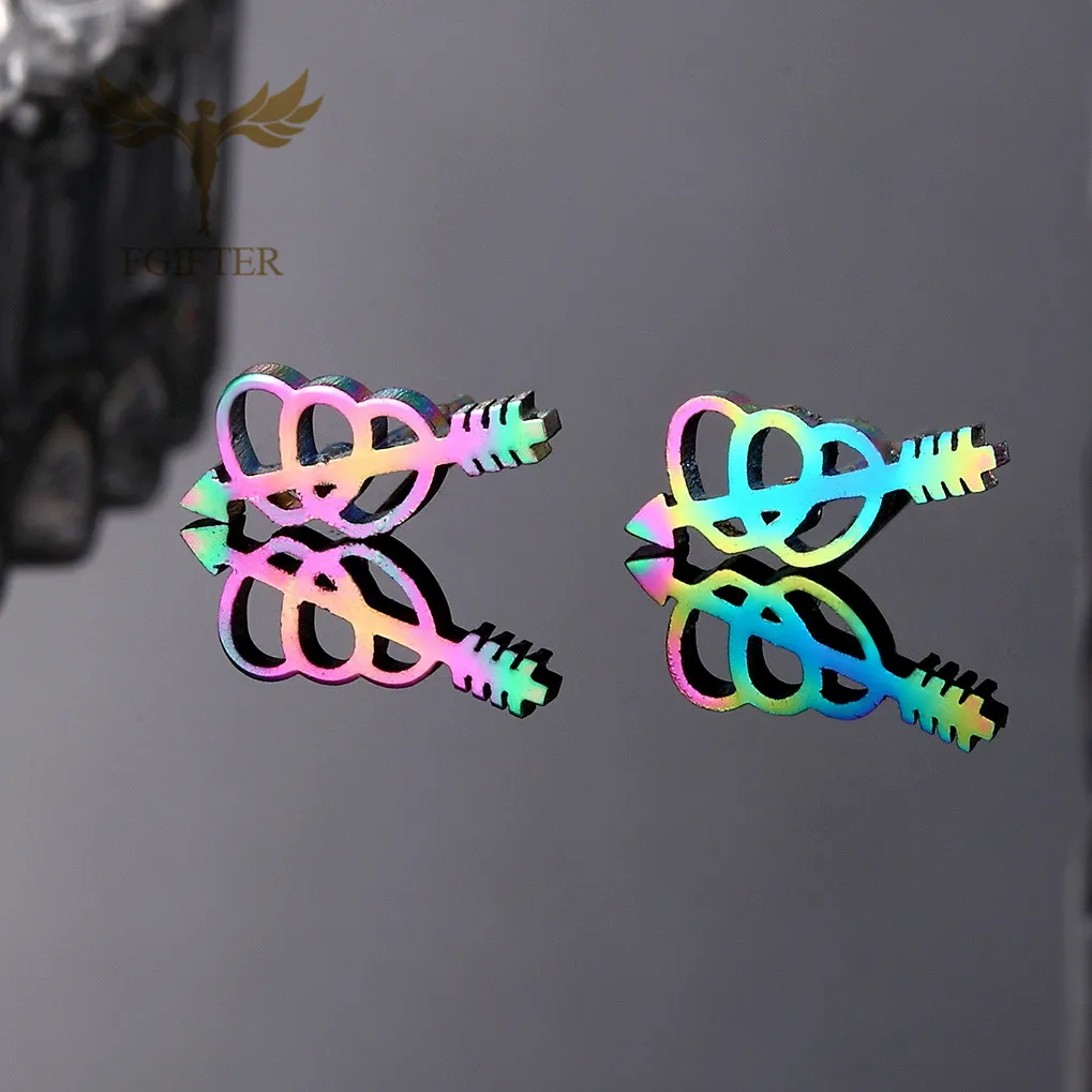 Fgifter ювелирные изделия для влюбленных, серьги в форме сердца со стрелкой в виде Купидона, разноцветные стальные аксессуары для подружек невесты, подарки