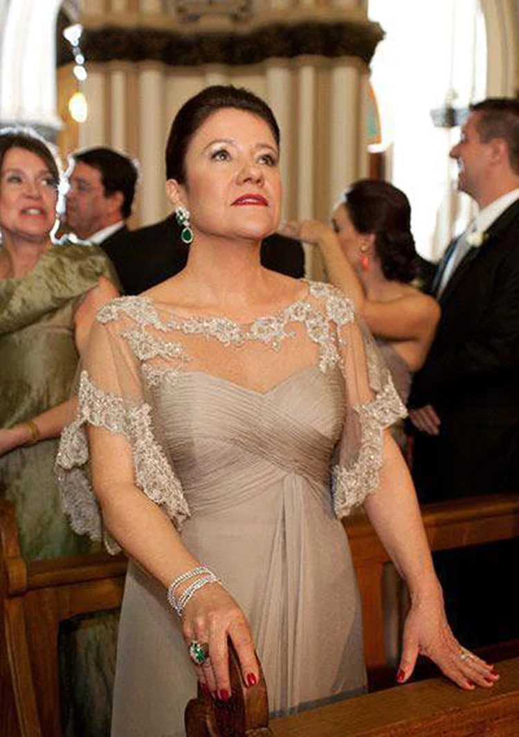 Платье для матери невесты с полурукавами и кружевной аппликацией