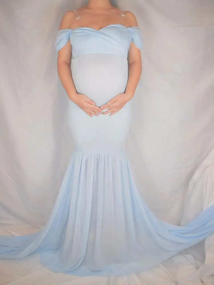 Платье для беременных из хлопка и шифона с открытыми плечами