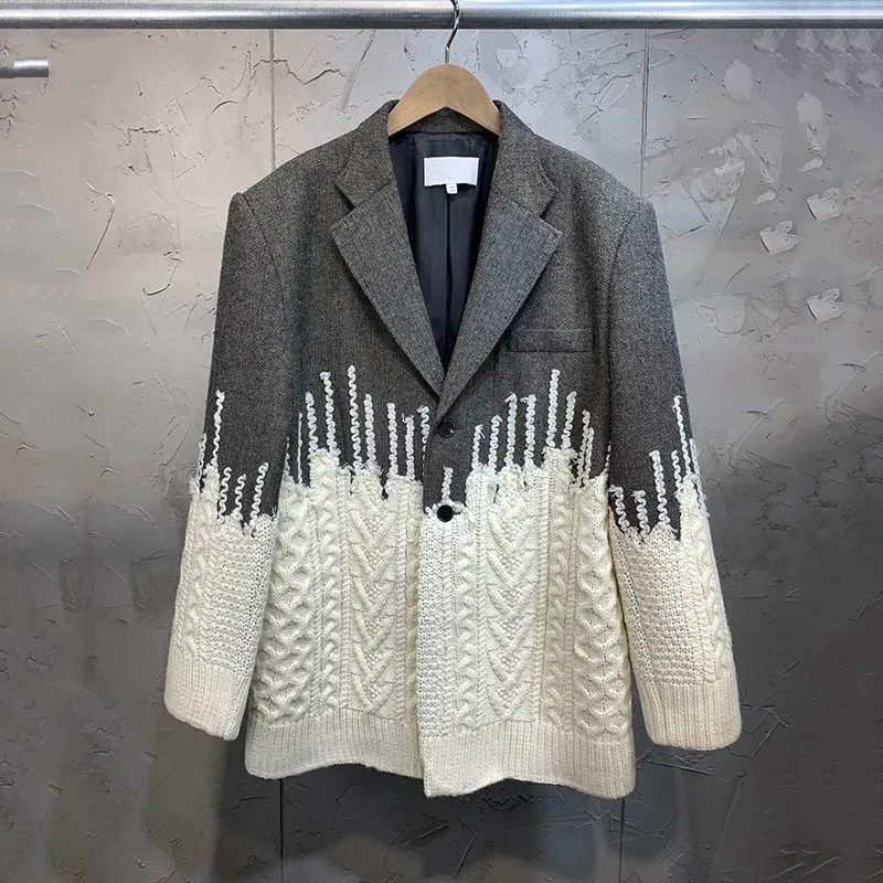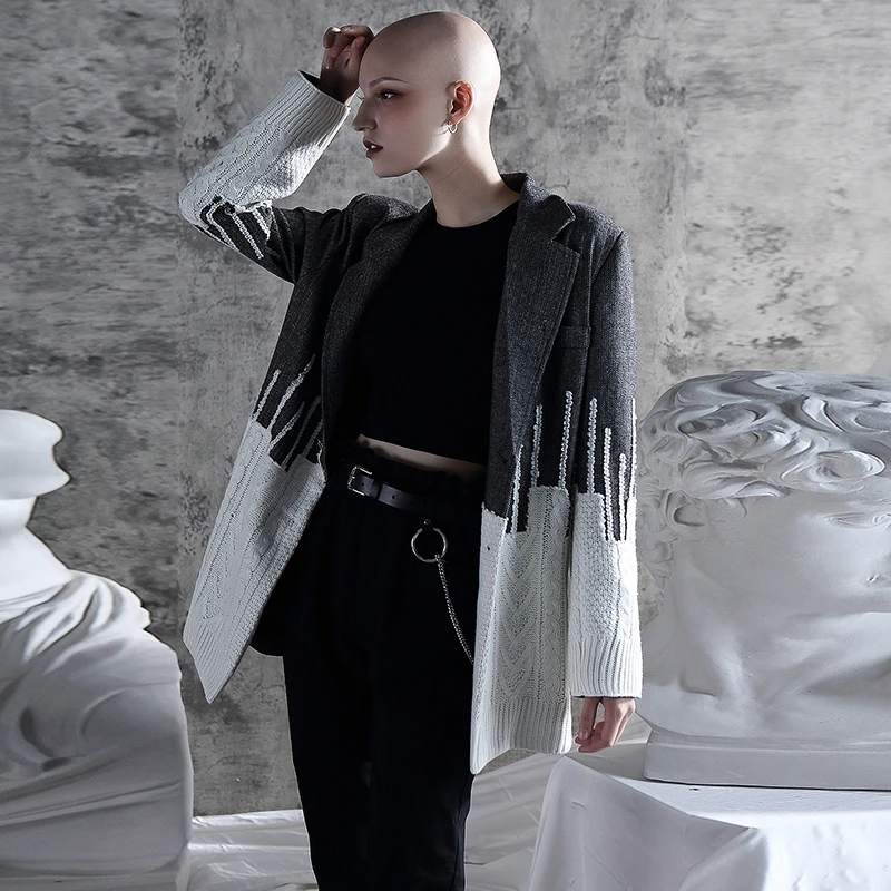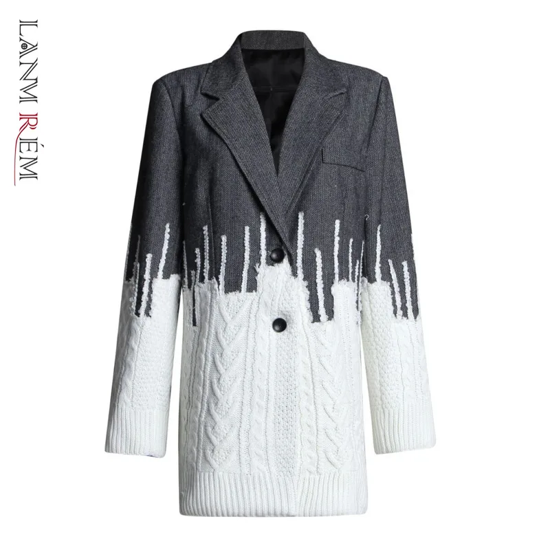 LANMREM 2021 Новая Осенняя модная уличная куртка Лоскутная контрастная цветная однобортная Свободная куртка с длинными рукавами WD24302L