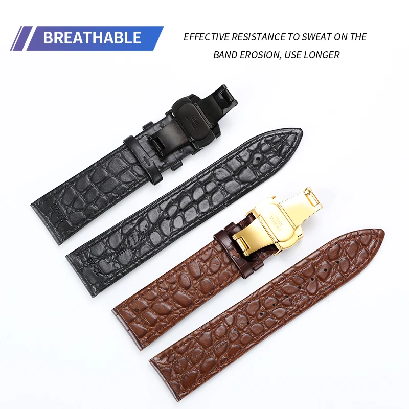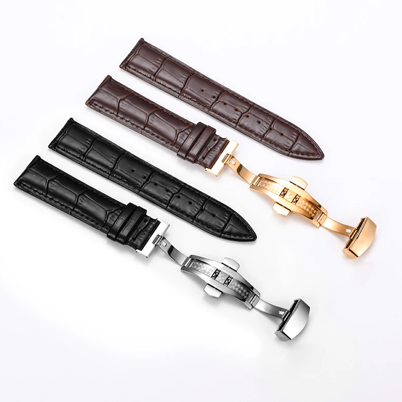 Название продукта: ремешок из телячьей кожи с пряжкой-бабочкой из нержавеющей стали с узором крокодила.