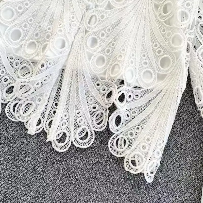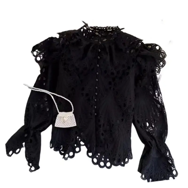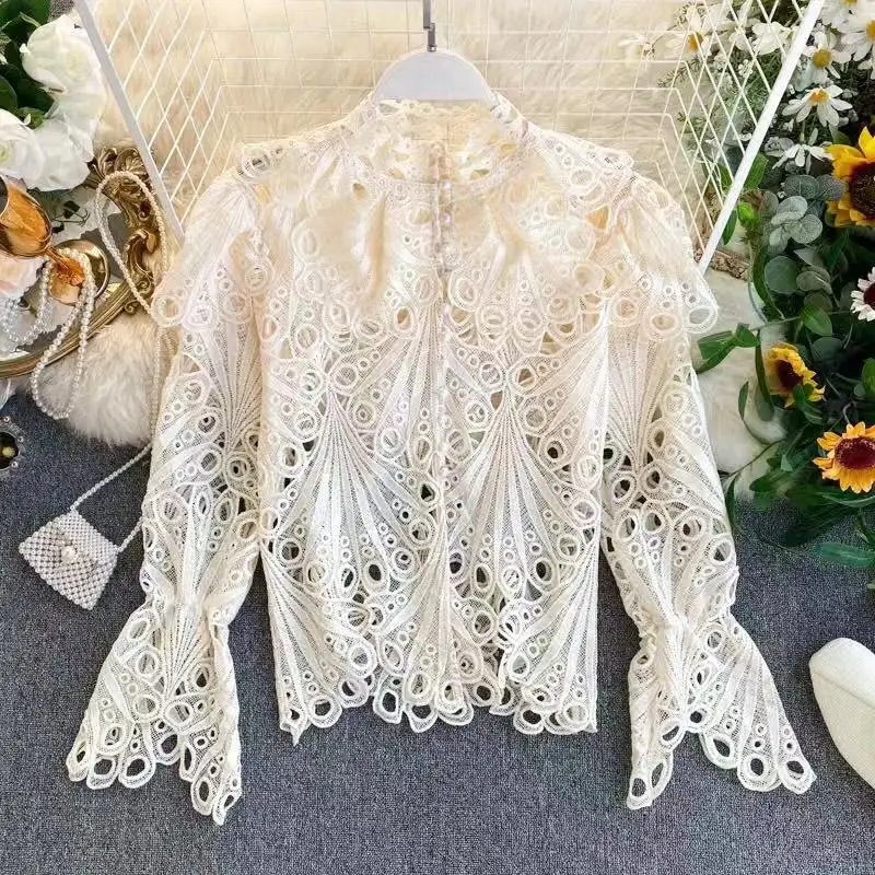 Женская кружевная блузка, белая блузка с высоким воротником и вышивкой, лето 2020