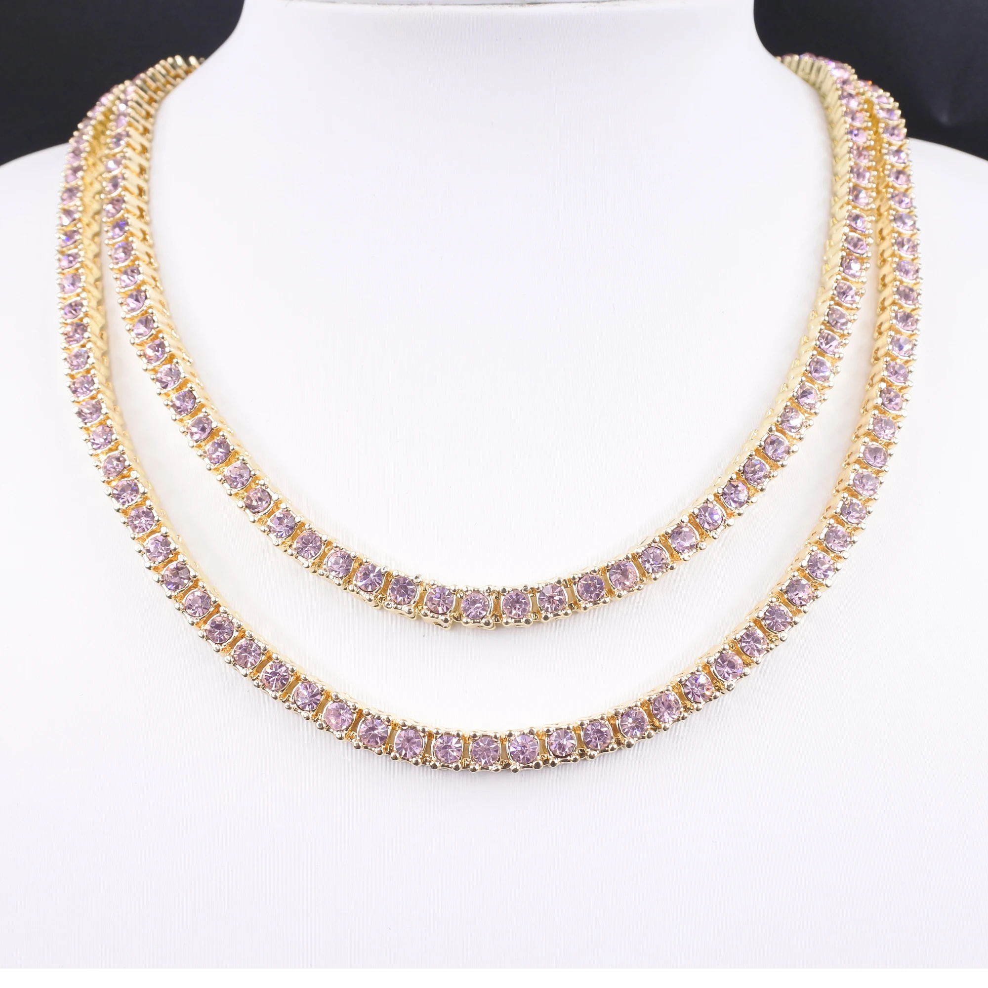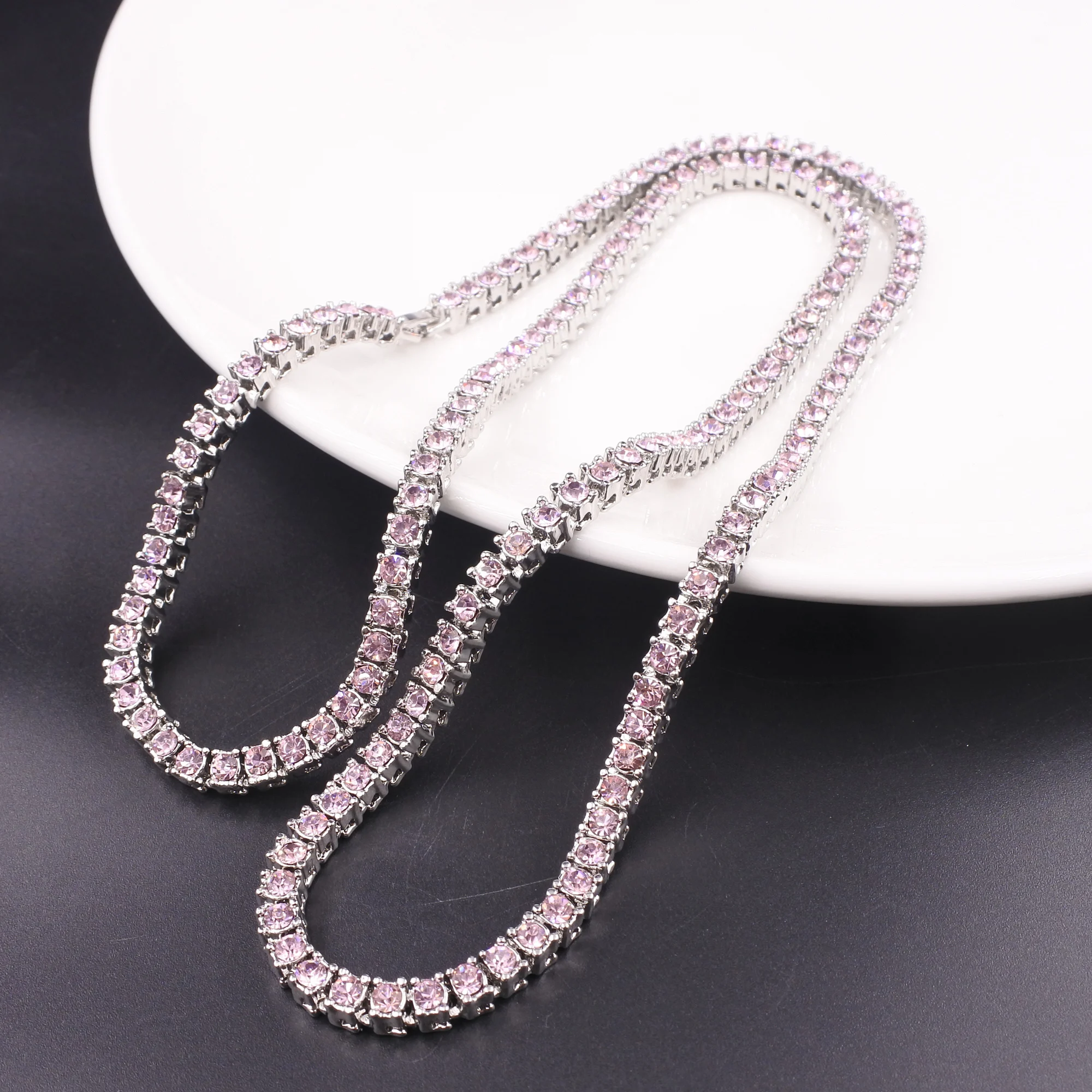 Цепь для тенниса с розовым кристаллом в 1 ряд, ожерелье в стиле хип-хоп для мужчин и женщин, сверкающая рок-танцовщица, рок-подарок, Ювелирное Украшение золотого и серебряного цветов с кубическим цирконием
