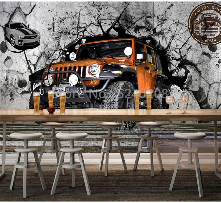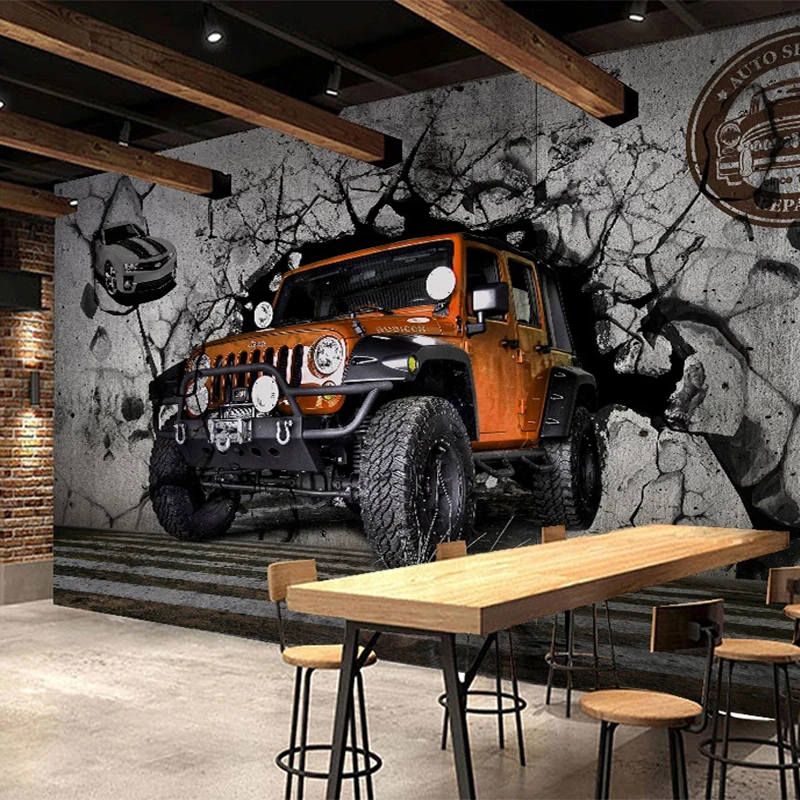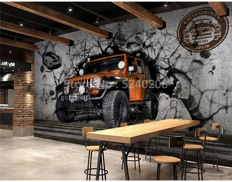 Пользовательские фото обои 3D ретро автомобиль сломанные настенные росписи ресторан кафе фон настенная бумага 3D водонепроницаемый самоклеящиеся наклейки