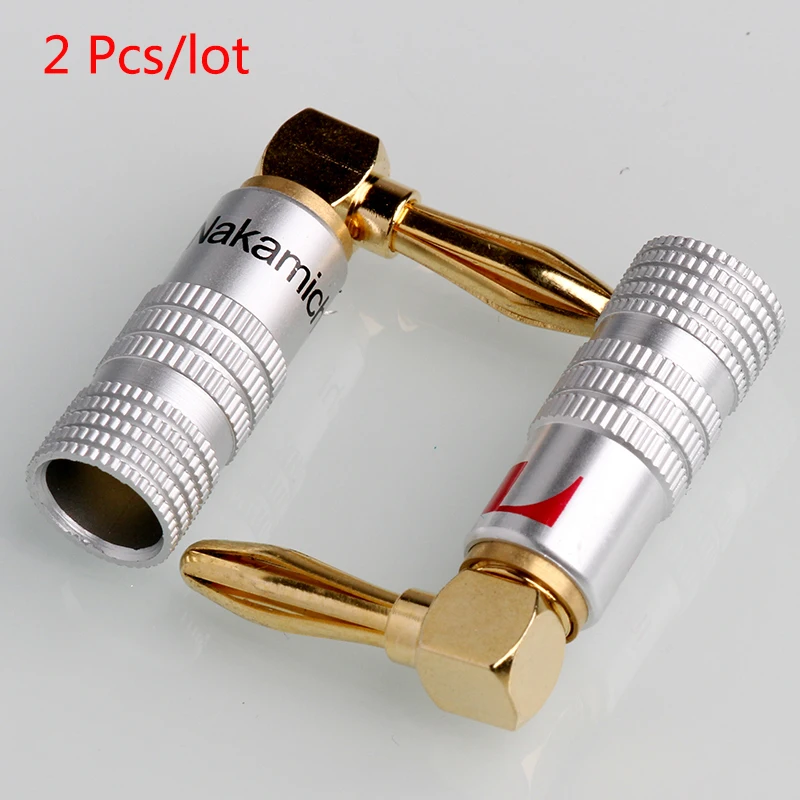 Оптовая продажа, переходник с вилкой типа банан Nakamichi под прямым углом 90 градусов, 4 мм, позолоченный адаптер для видеодинамика, аудиоразъем, банановый разъем