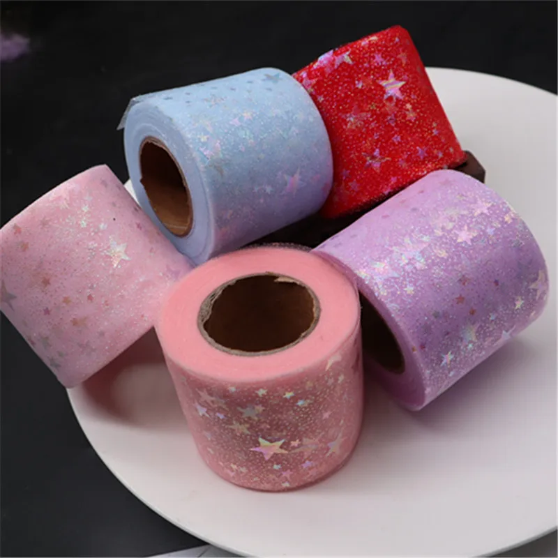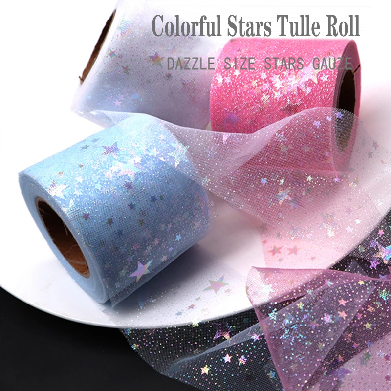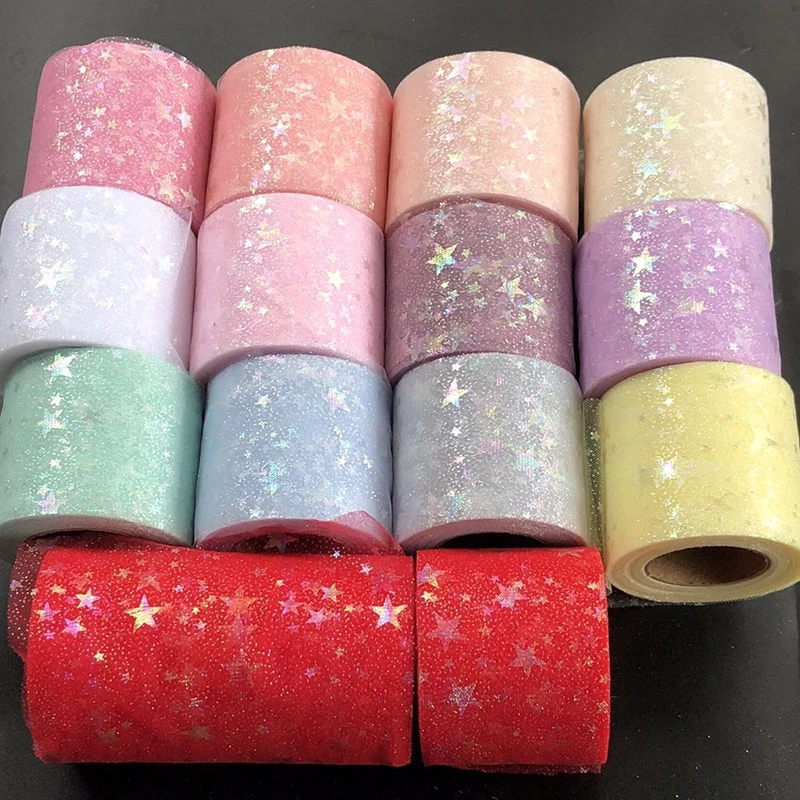 25 ярдов 6 см Тюль со звездами разноцветный Блестящий тюль выпечка торт Топпер Туту помпон бант мягкий тюль DIY Свадьба День Рождения украшения