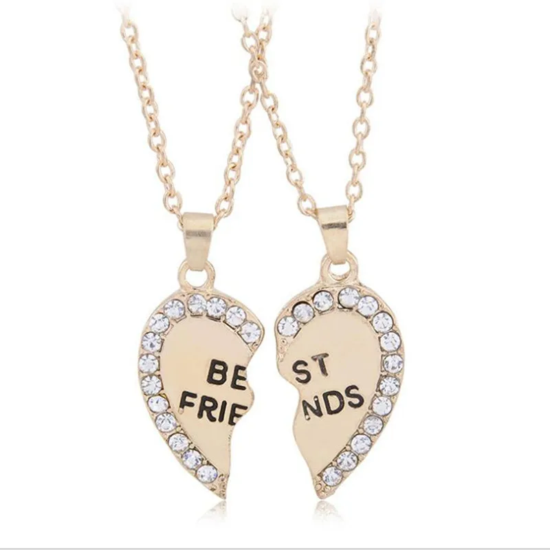 Унисекс 2 шт BFF ожерелье женщины кристалл сердце кулон лучший друг...