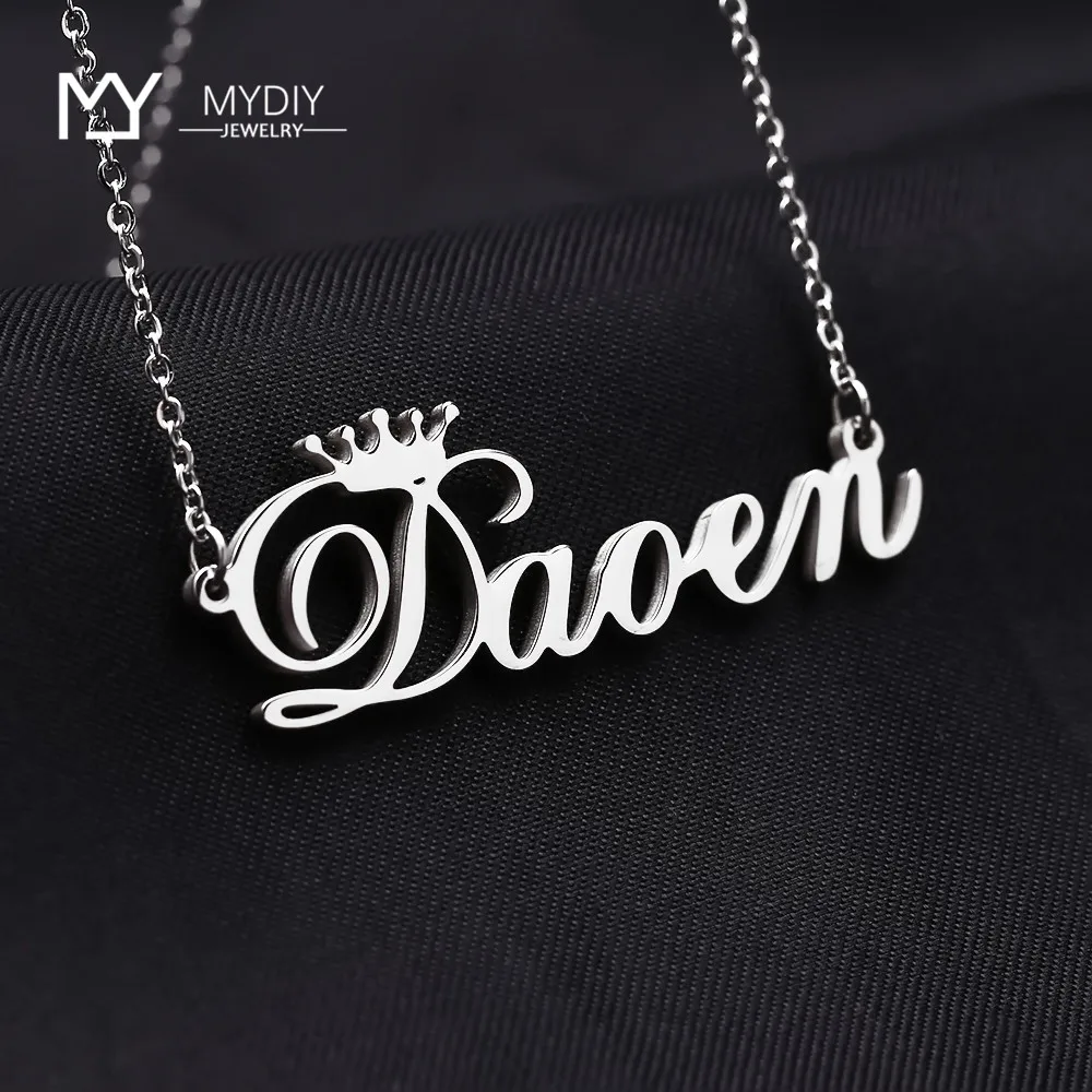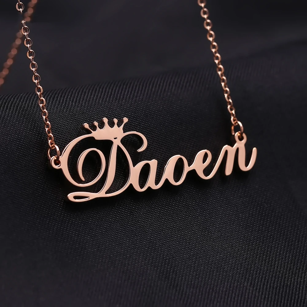 Ожерелье с именем короны, персонализированный подарок индивидуальная именная табличка, золото, нержавеющая сталь, ювелирные изделия, подарок ручной работы для женщин, чокер