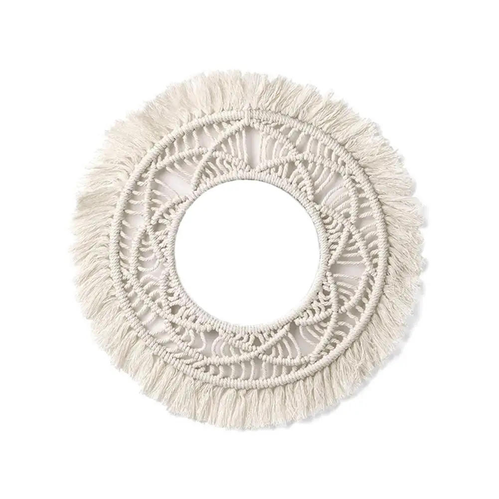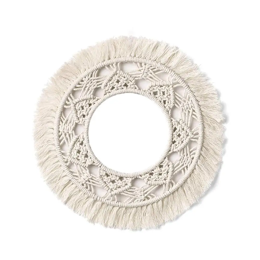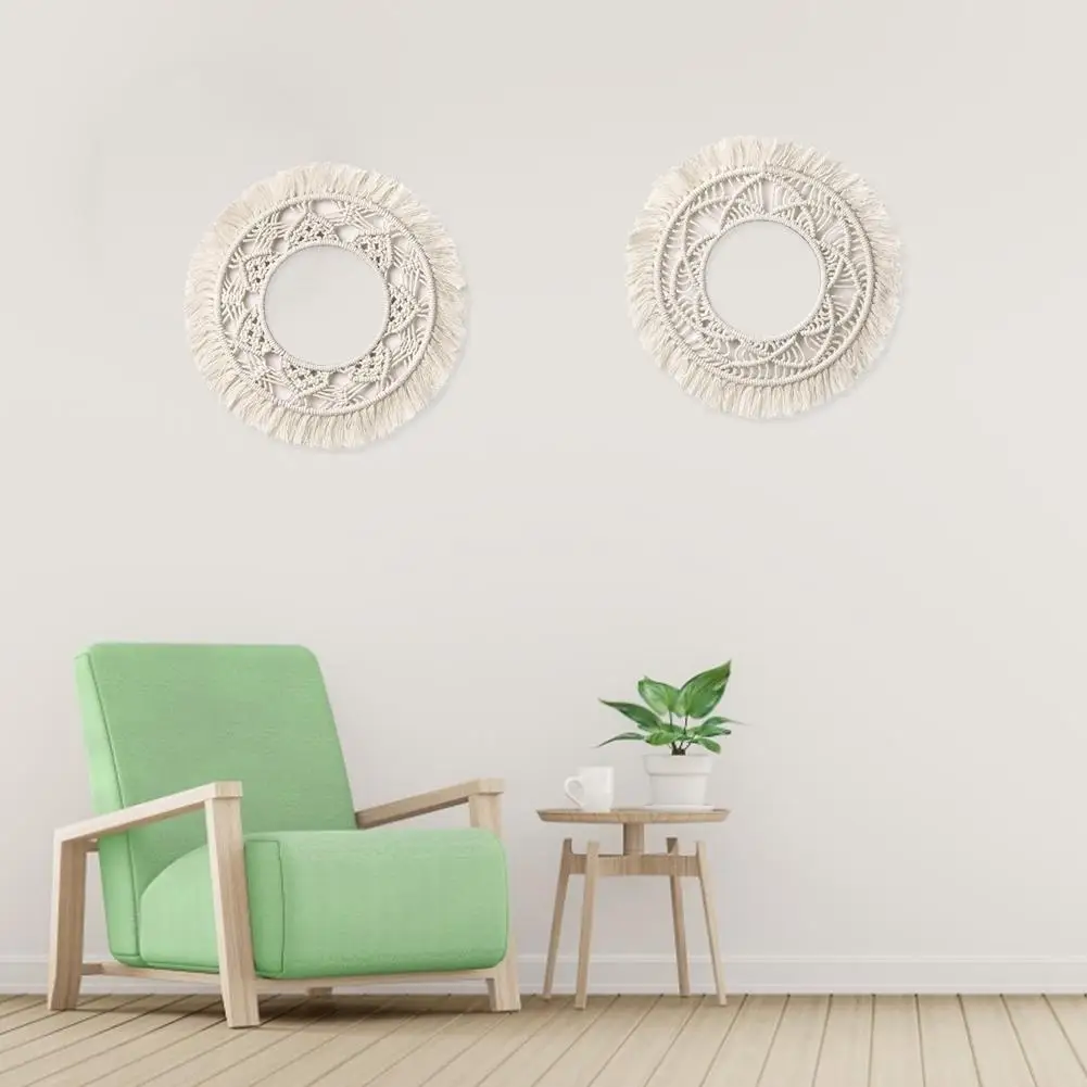 Висит настенное зеркало с края макраме 2 комплекта маленькие круглы...