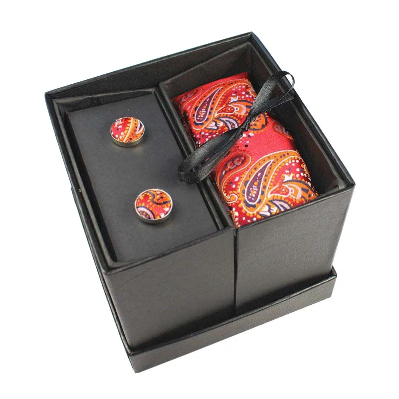Мужской галстук, нагрудный платок в подарочной коробке, классические галстуки с узором пейсли и в клетку шёлковый жаккард, набор запонок