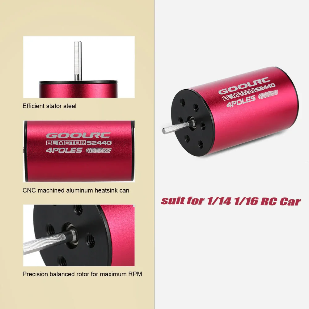 В набор входят двигатель S2440 1/14 кВ и ESC 35A, которые идеально подходят для автомобилей 1/16 RC. Этот двигатель изготовлен из лучших доступных материалов и предназначен для обеспечения как качества, так и производительности по доступной цене. И это из высококачественных деталей из алюминиевого сплава, которые производятся на новейших фрезерных станках с ЧПУ. Кроме того, ESC имеет улучшенный отклик дроссельной заслонки, отличное ускорение, сильные разрывы и линейность дроссельной заслонки.
