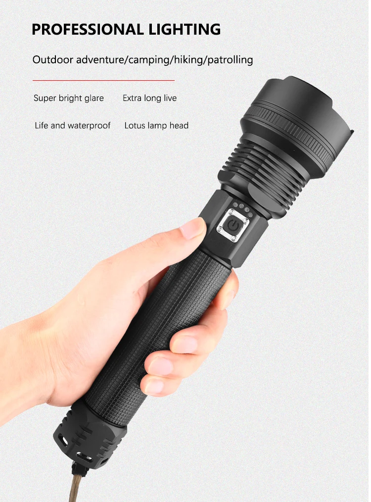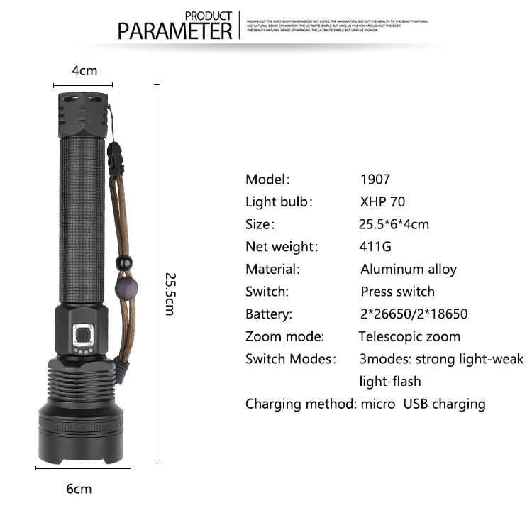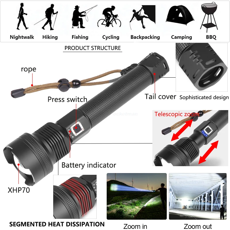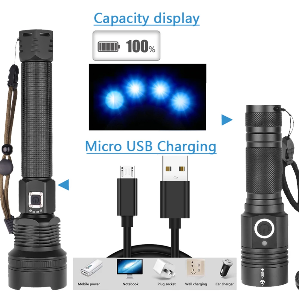 Самый мощный светодиодный фонарик XHP70 с зарядкой от USB, масштаби...