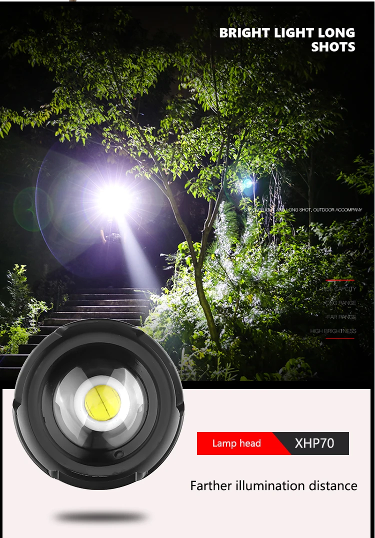 Самый мощный светодиодный фонарь XHP70.2 с тактическим зумом, дальн...