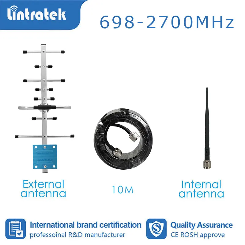 Усилитель сигнала Lintratek GSM, 900 МГц, 1800, 2100, 2600, 700, 800, 2G, 3G, 4G, антенна Яги, кнут, кабель 10 м, s4
