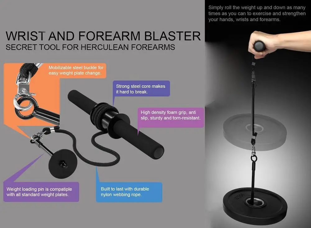 1. Прочная стальная конструкция, прочный трос, его можно использовать со стандартным дискусом, специальным эффективным тренажером для развития прочности запястья и предплечья.