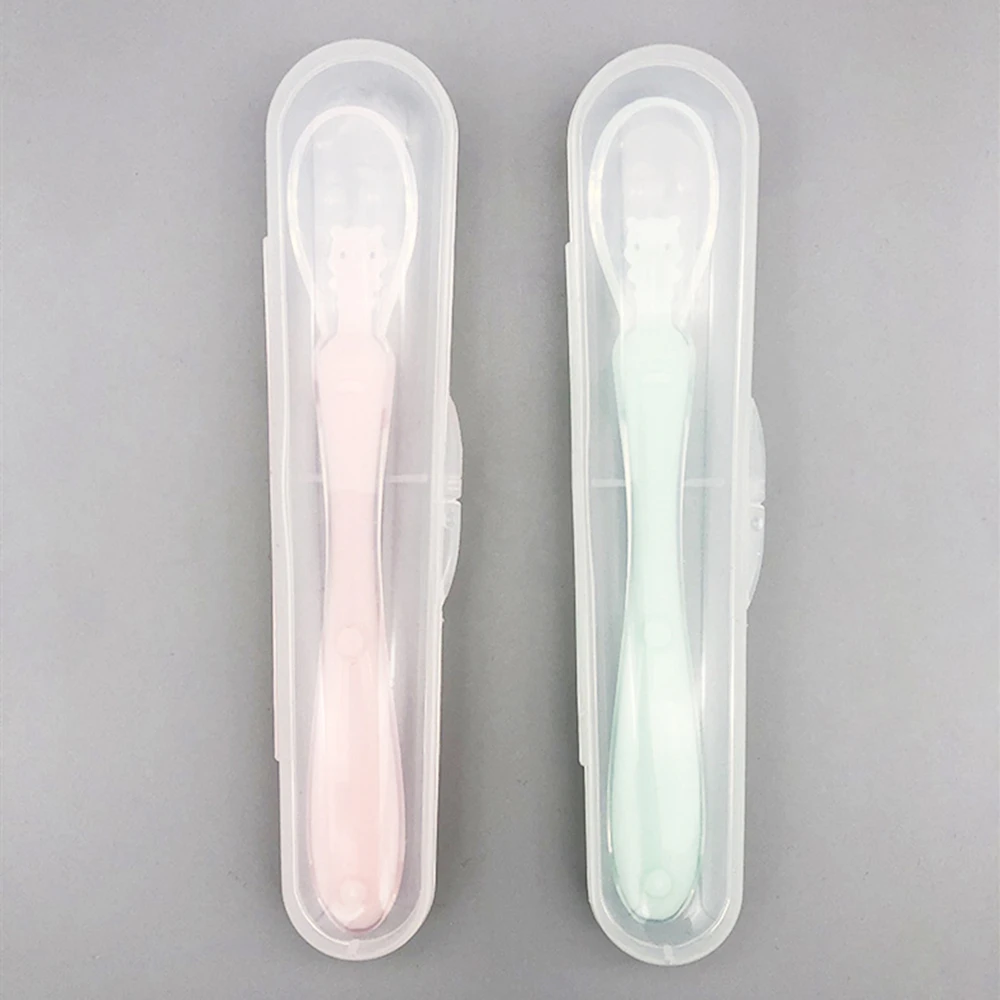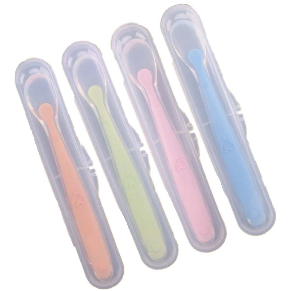 1 шт., пищевой ложка в коробке для малышей, детский чехол для хранения, контейнер для Детская Ложка силиконовая, прозрачный дорожный бокс для хранения