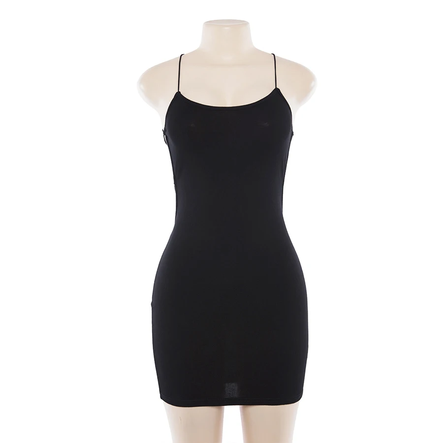 Сексуальное черное летнее платье для женщин, однотонное платье на бретельках с открытой спиной для ночного клуба, облегающее вечернее мини-платье с низким вырезом