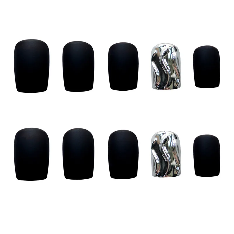 Накладные ногти для девочек, 24 шт.компл., матовые, дымчатые, черные, волнистые, накладные, квадратные, головка съемная