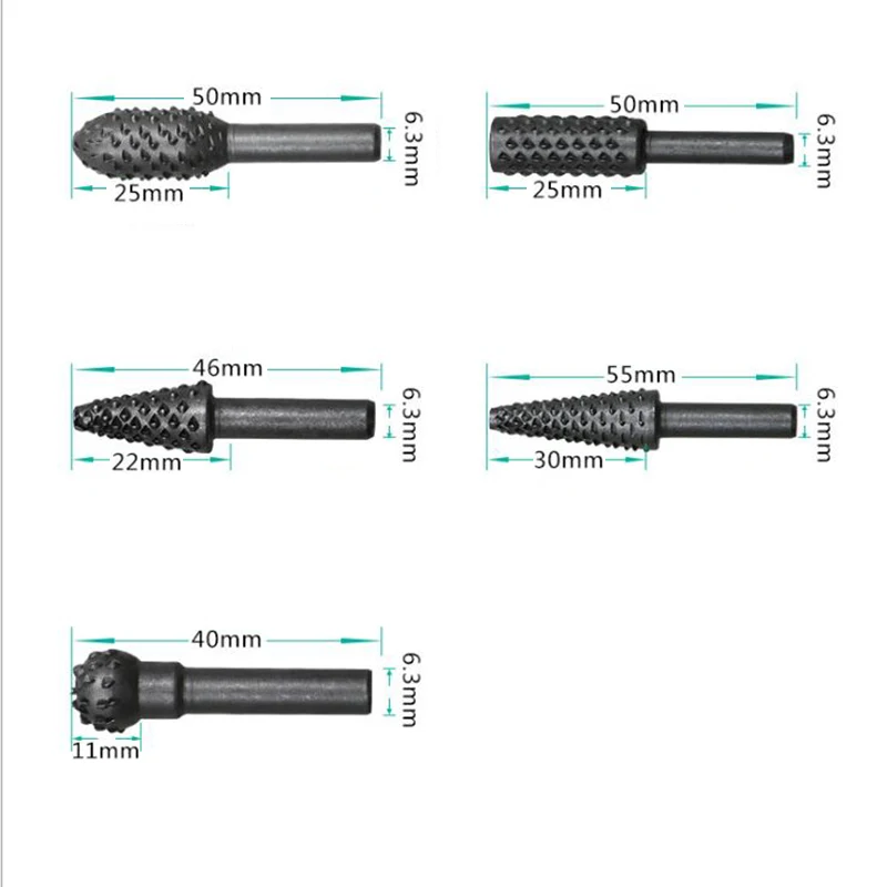 5 шт./компл. напильник, набор сверл, шлифовальный станок, напильник для деревообработки, инструмент для резьбы по дереву, 1/4 дюйма, набор роторных заусенцев с круглым хвостовиком
