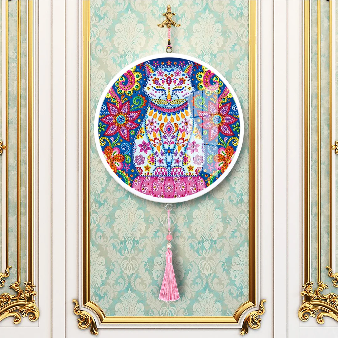 5D DIY Алмазная картина в круглой раме с кисточками, Настенная карт...