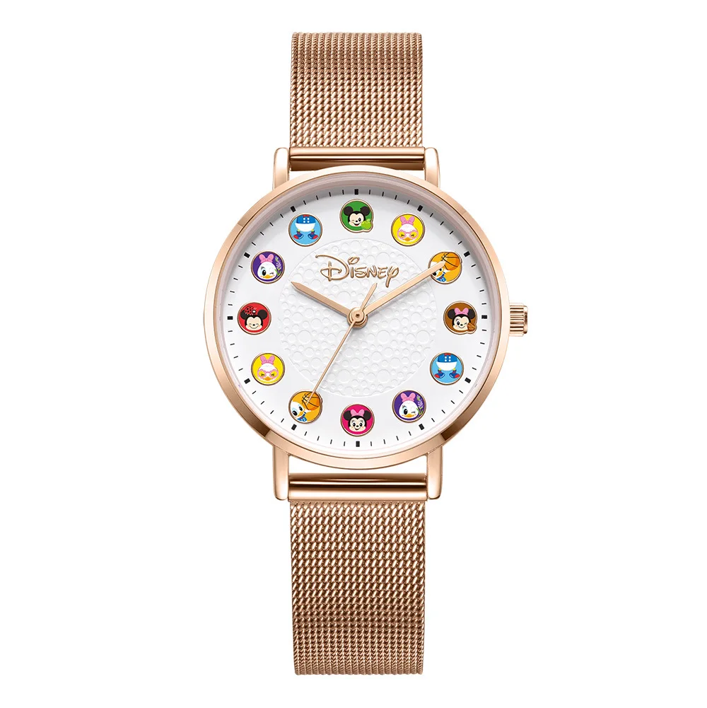 Часы Disney из нержавеющей стали с розой и золотом, модные простые ...
