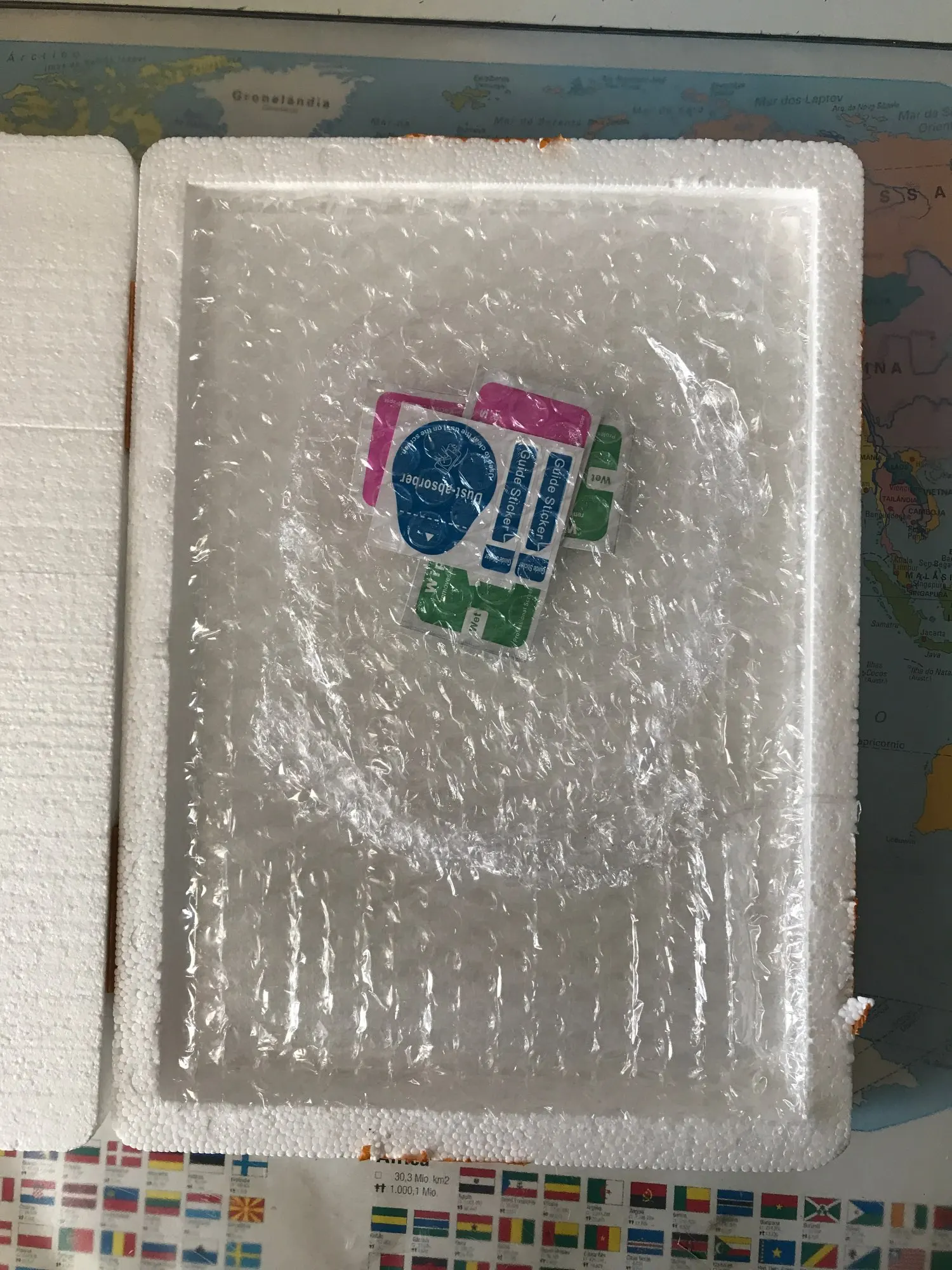 пришёл в упаковке из пенопласта. все целое. Клеил в первый раз, всё подошло по размерам. на айпад 9.7.