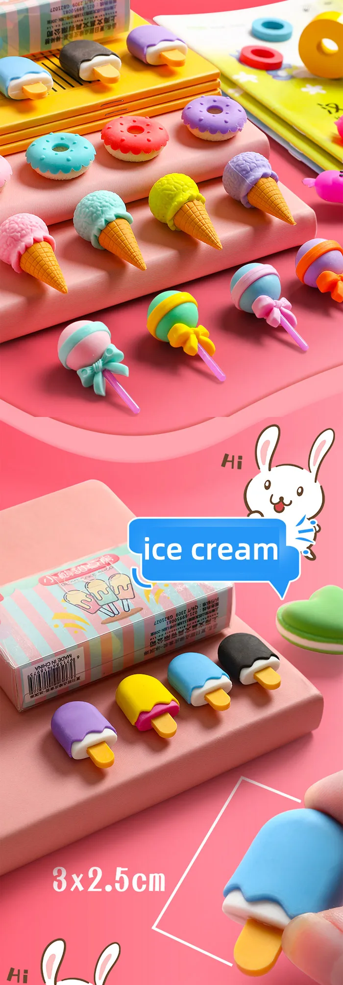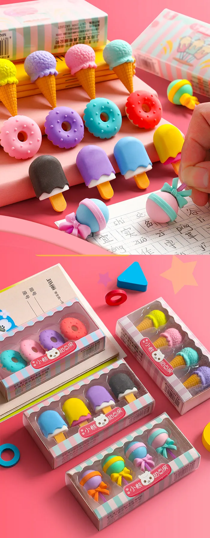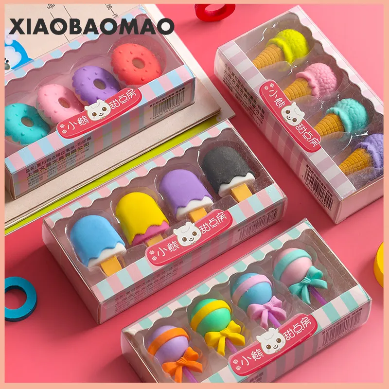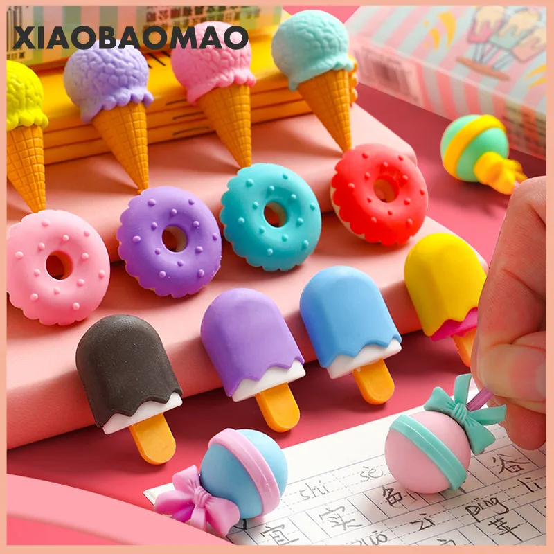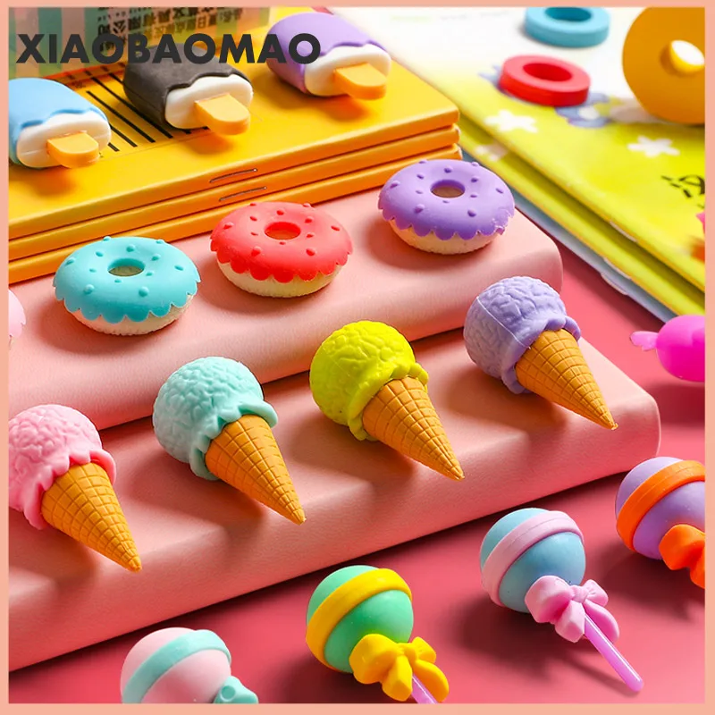 2020 8 шт. милый ластик для мороженого гамбургера леденца съемный резиновый ластик для детей подарок корректирующий инструмент школьные канцелярские принадлежности