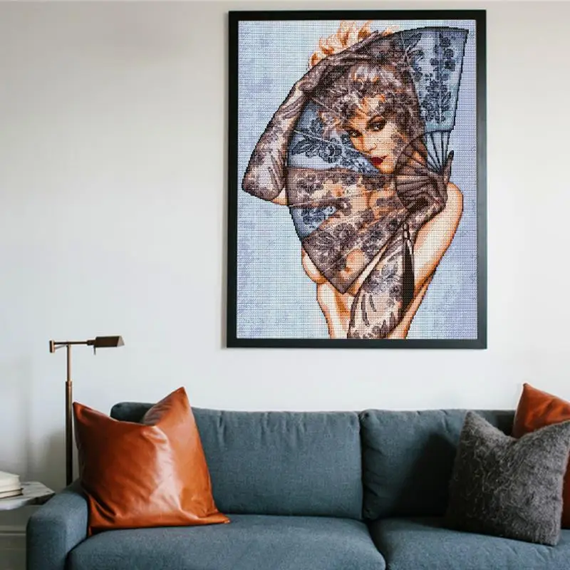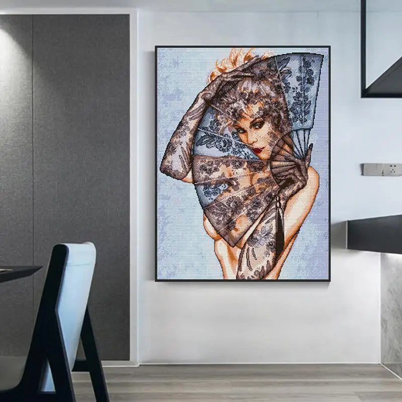 Сексуальный красивый и складной веер, Набор для вышивки крестиком, принт с персонажем, 11CT 14CT, рукоделие, вышивка, украшение на стену, живопись