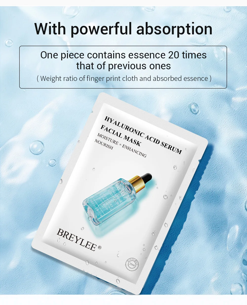 Маска для лица с гиалуроновой кислотойУвлажняет и питаетБогатый молекулами гиалуроновой кислоты, он оказывает сильное увлажнение для эффективного решения обезвоженной и сухой кожи и восстановления упругости кожи.