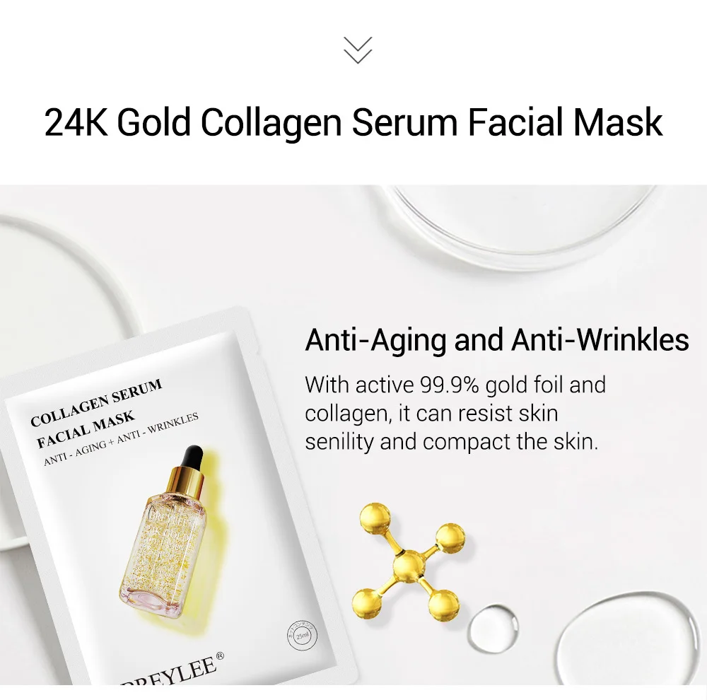 24K Золотая коллагеновая сыворотка маска для лицаПротив старения и морщинС активной 99.9% золотой фольгой и коллагеном, он может противостоять чувствительности кожи и компактности кожи.
