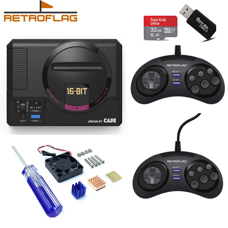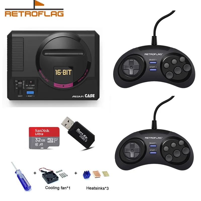 Retroflag MEGAPi CASE-M с классическим USB контроллером-M + 32 ГБ sd-карта для Raspberry Pi 3 B Plus (3B +) / 3B / 2B