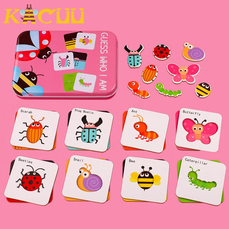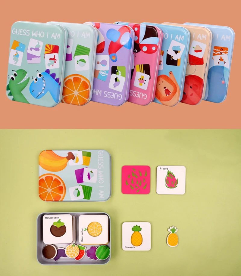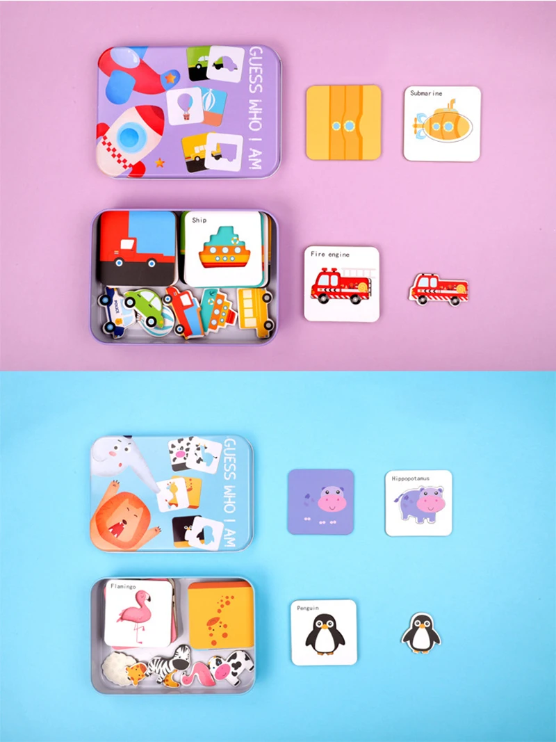 Детский новый деревянный пазл с железной коробкой, детские ранние головоломки животного, познавательные деревянные головоломки, игрушки