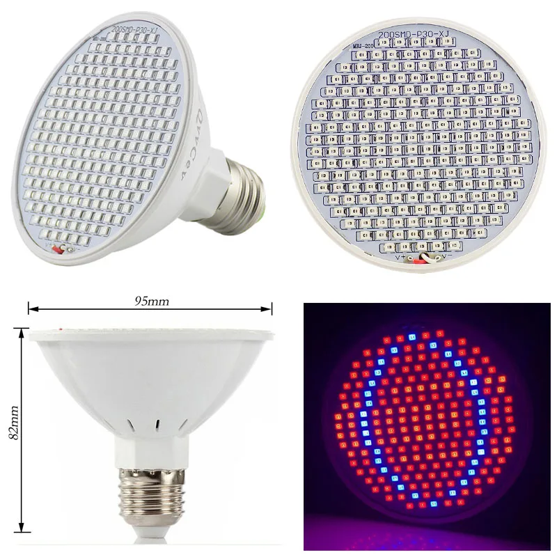 3-головная 200 Светодиодная лампа для выращивания растений с зажимом, красная, синяя, Veg лампа, гидро-тент, семена цветов для комнатной комнаты, двойная E27 садовая палатка