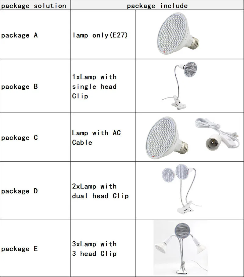 1 pcs 200 led including:158 X red light , 32xblue ,2 xwhite ,4 x warm light ,2 X UV,2 x IR