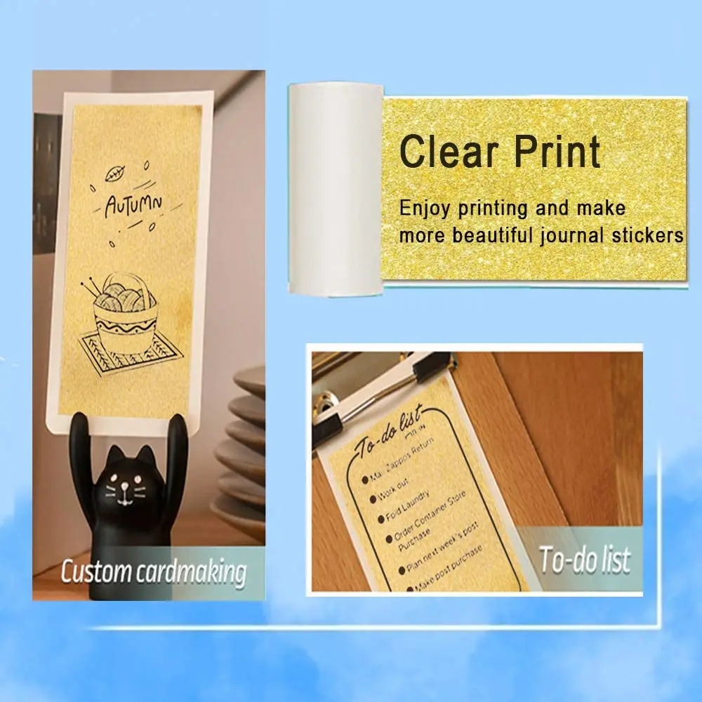 Pomemo 3 рулона Клейкая Прозрачная Золотая термальная бумага для pomemo M02/M02S мини Bluetooth карманный принтер 53 мм x 3,5 м