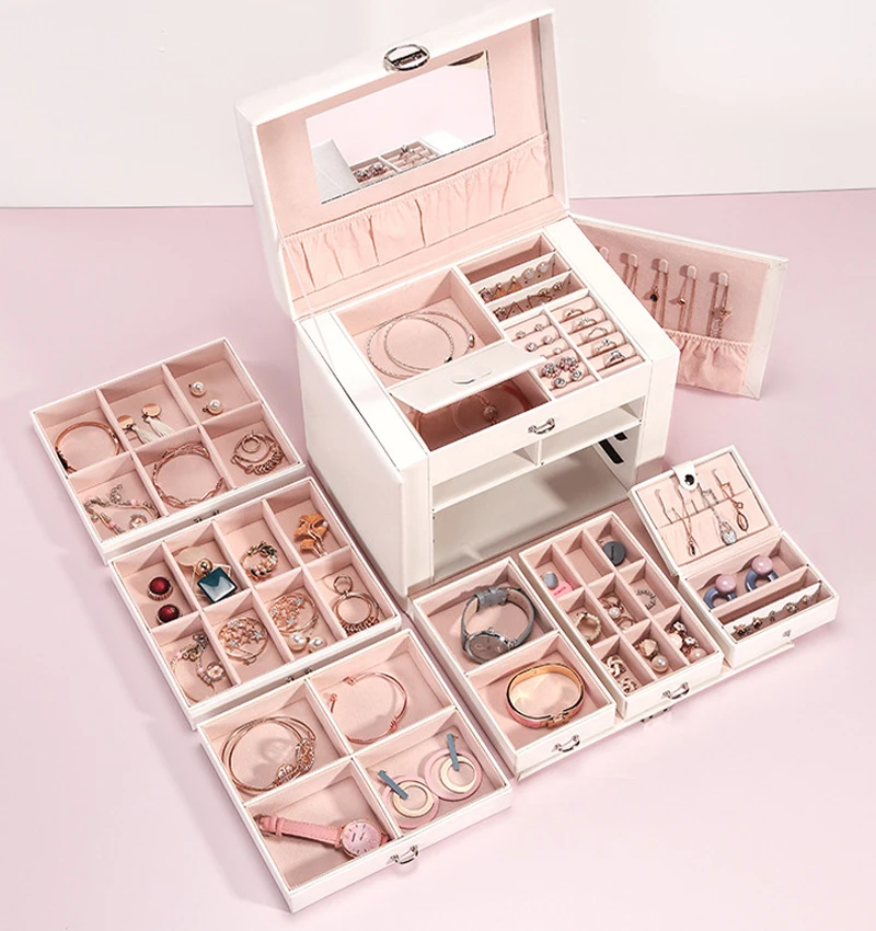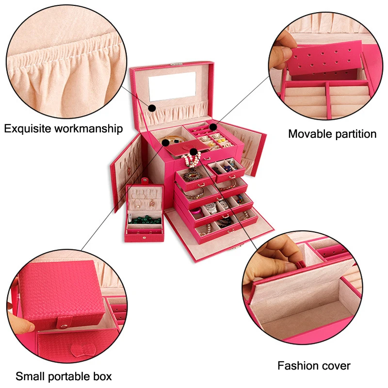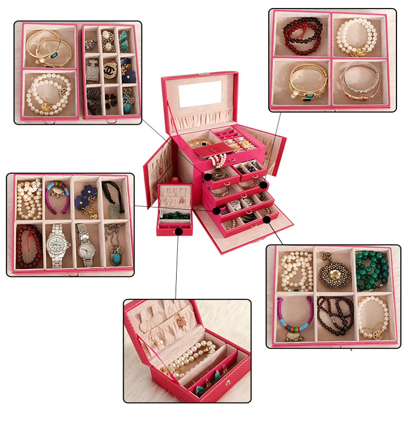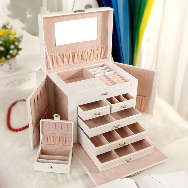Шкатулка для хранения ювелирных изделий в европейском и корейском стиле, ящик из искусственной кожи, шкатулка для макияжа ювелирных изделий, пятислойная шкатулка большой емкости для хранения ювелирных изделий