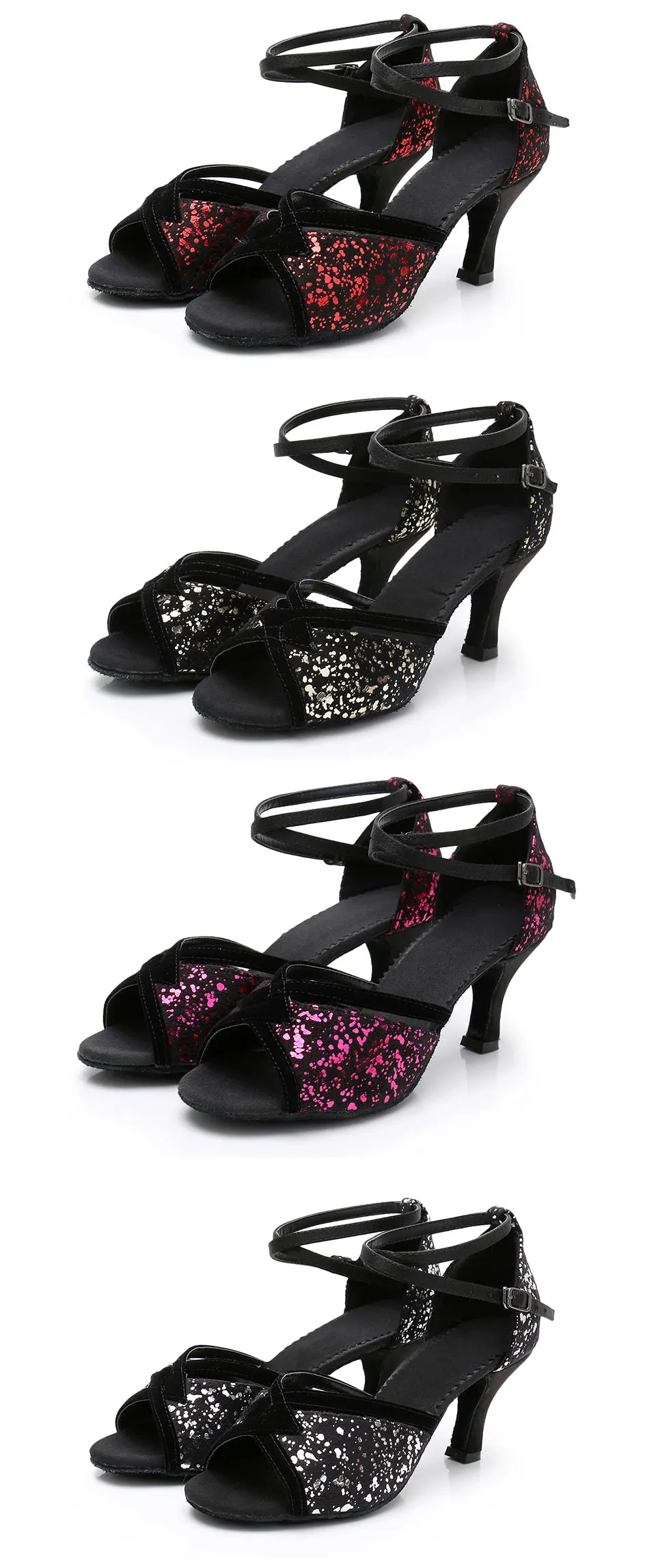 Обувь для латинских танцев, для девочек, с блестками, с закрытым но...